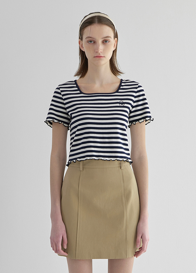 스트라이프 배색라인 U넥 웨이브 크롭 티입니다.