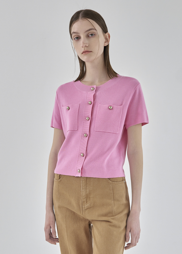 (CD-2060)ボタンポイントクロップニットカーディガン