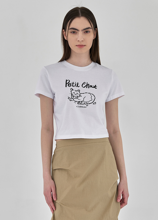 슬림핏 라운드넥의 크롭한 티셔츠로 착용시 슬림하고 다리가 길어보이는 효과를 주며 여름 시즌 캐주얼한 무드로 다양하게 코디하기 좋은 아이템입니다.