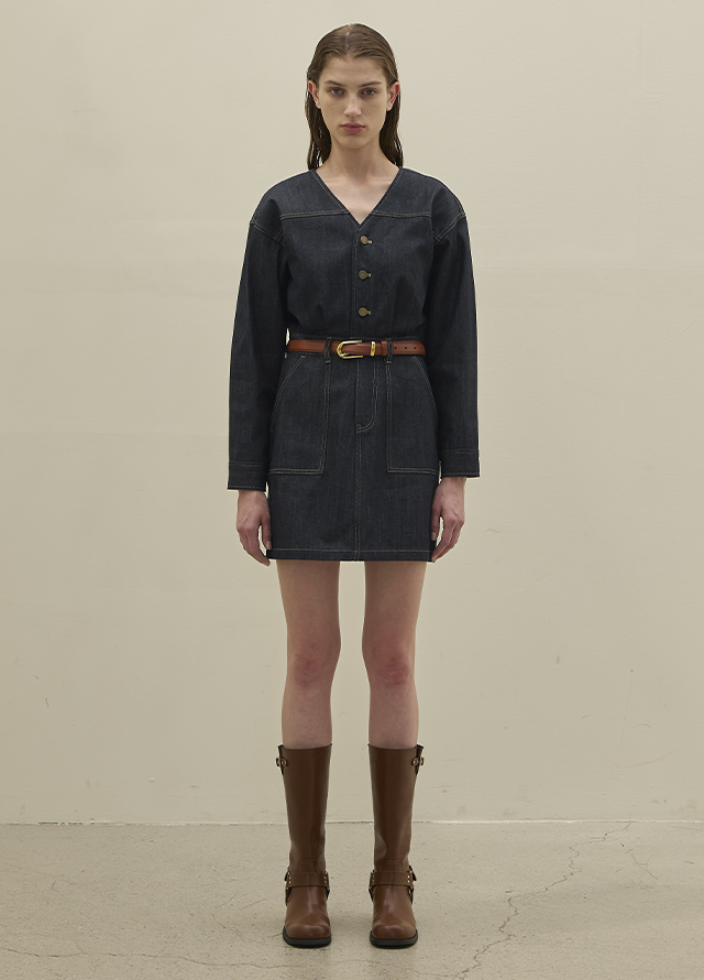 (OP-6106)セルビジーVネックデニムミニワンピース