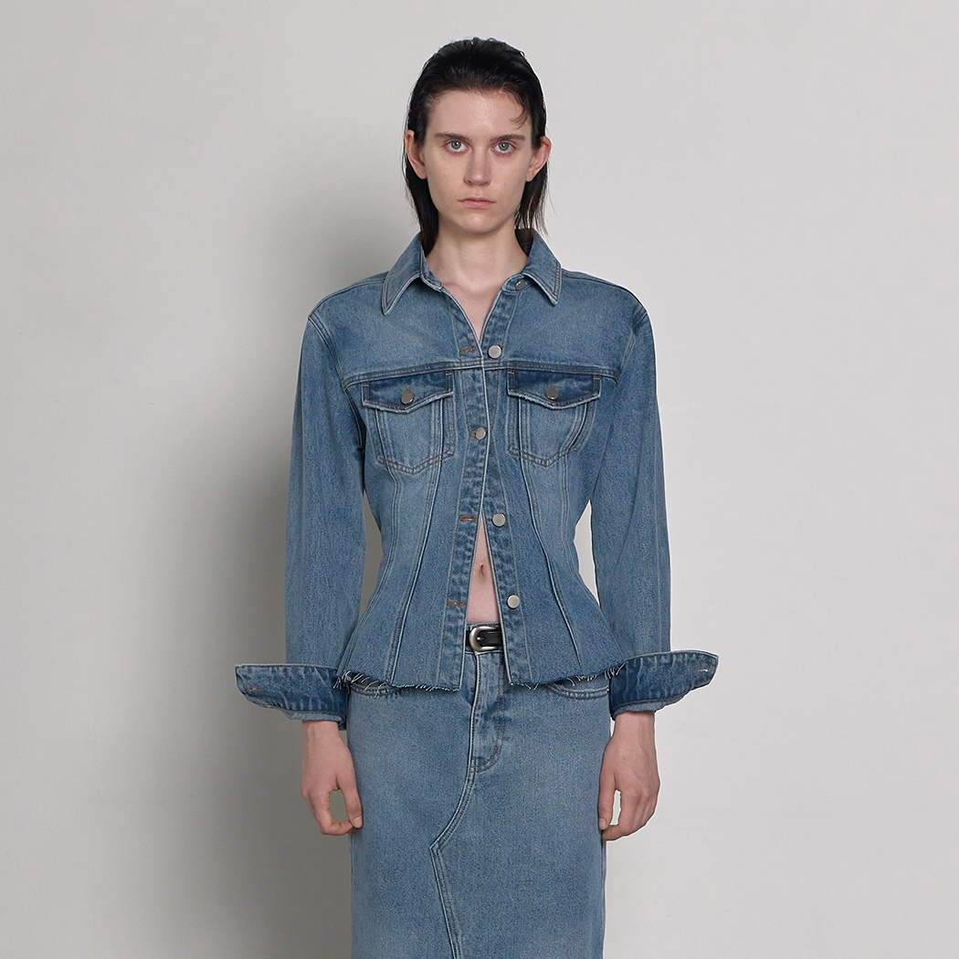 (JK-2911)アロンセットアップペプラムデニムジャケット