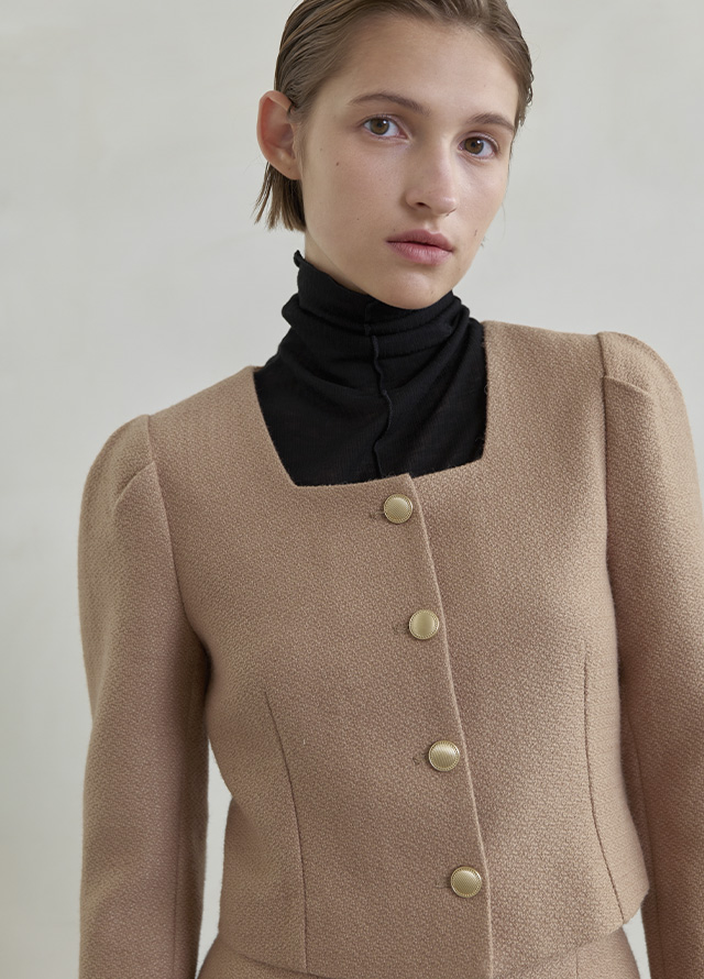 스퀘어 네크라인과 금속단추를 사용해 고급스러움을 느껴 보실 수 있습니다.