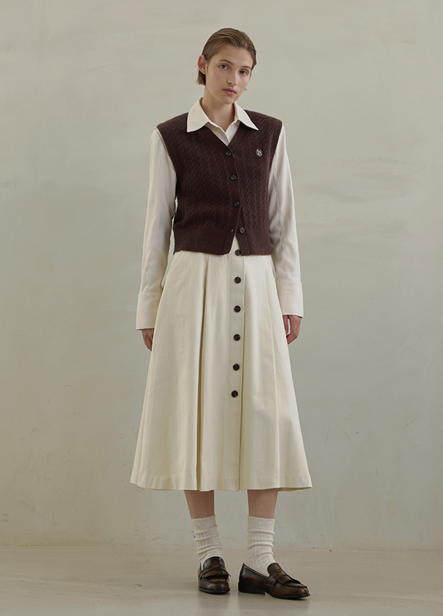 (SK-4854)アーモンドコットンマキシフレアスカート