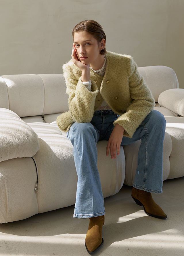 헤어리한 울 혼용의 소재로 누빔안감처리가 되어있어 더욱 보온성을 강화하였습니다.