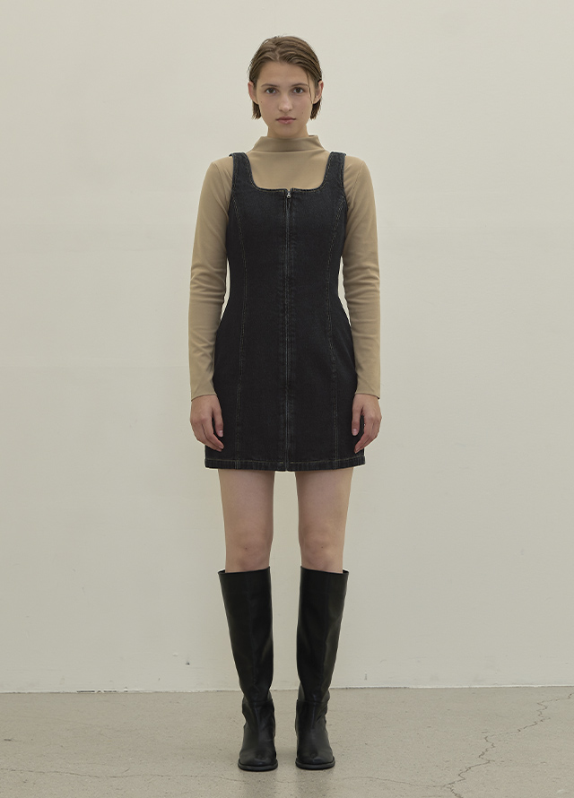 앞 여밈 지퍼로 편리함을 더했으며 레이어드 원피스로 다양한 이너와 코디 가능합니다.