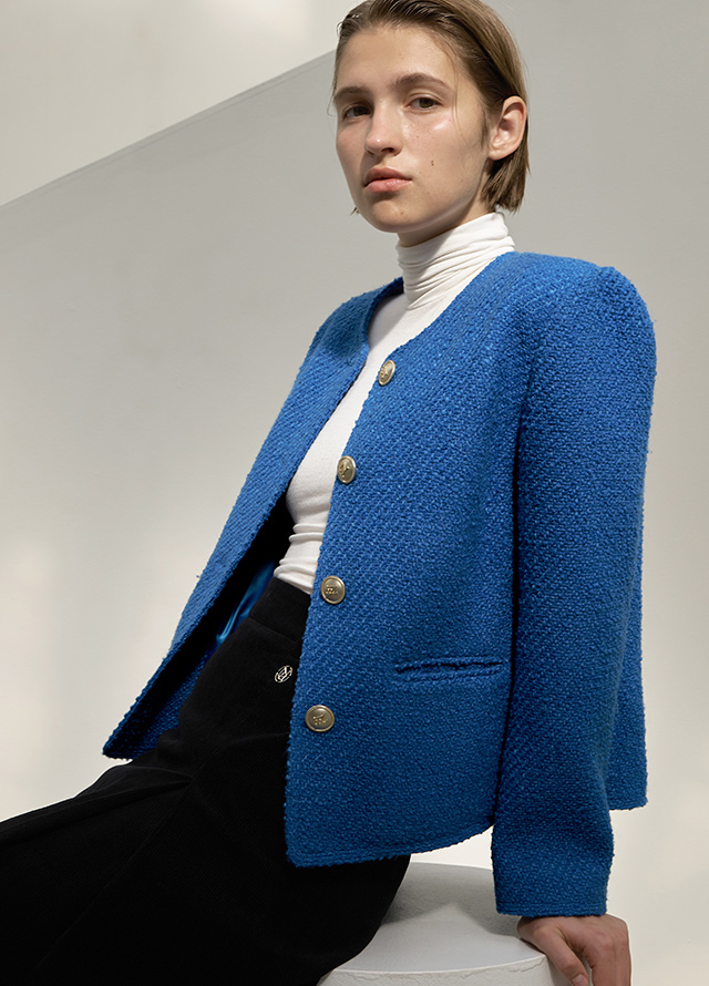 울 혼용의 트위드 원단을 사용해 보온성이 탁월하며