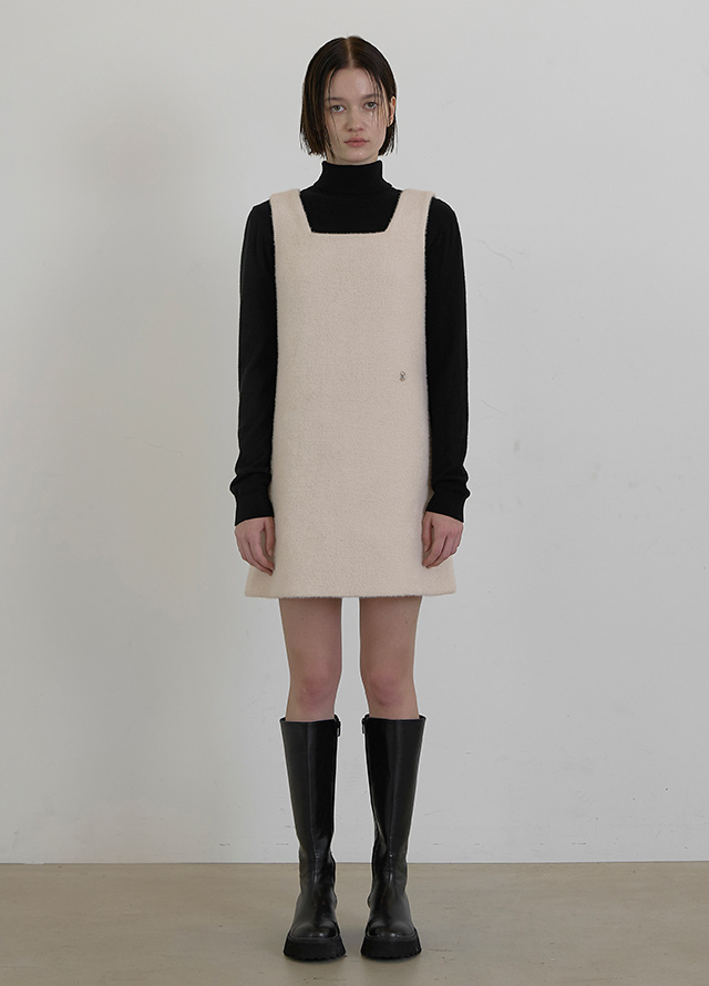 스퀘어 라인의 네크라인과 뒷 지퍼로 깔끔하게 착용이 가능하고,