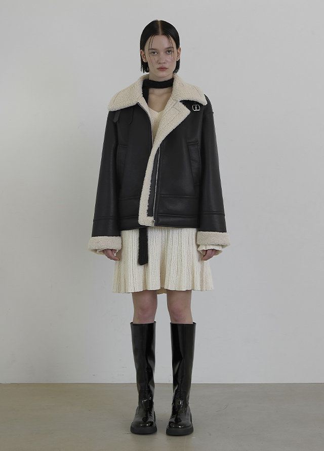 에코 레더 소재로 제작된 무스탕 오버핏 자켓입니다.