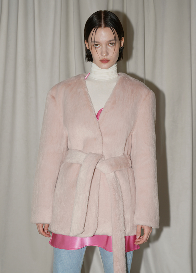 (JK-2905)ルアンノカラベルティードファージャケットSピンクベージュ