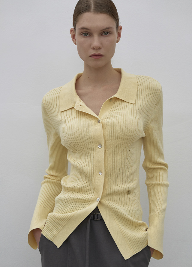 (CD-2103)COLLAR RIBBED SLIM KNIT CARDIGAN