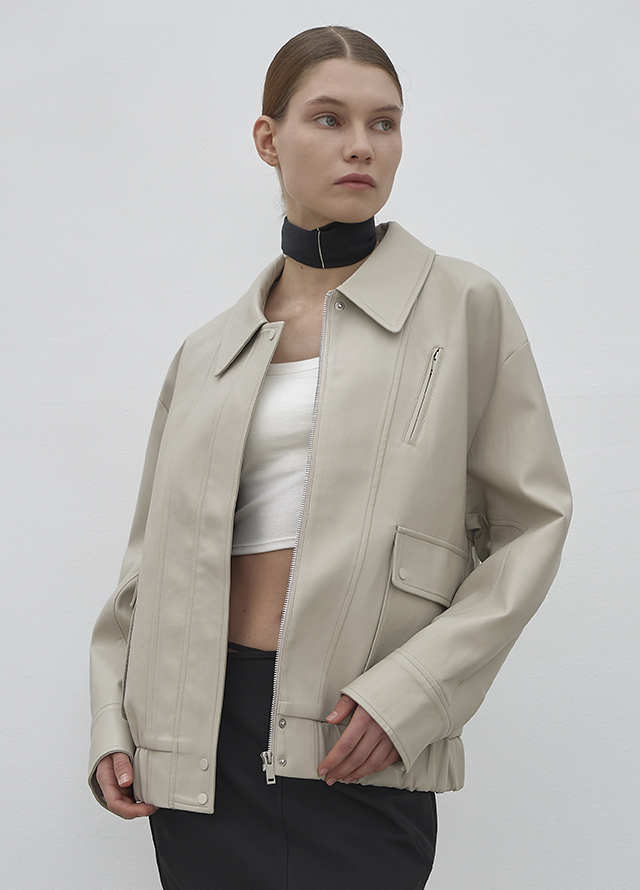 오버핏 사이즈로 여유있게 착용가능한 레더 점퍼입니다.
