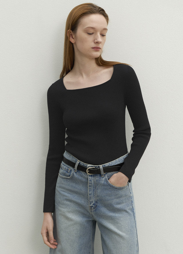 (ZT-6758)ESSENTIAL SQUARE NECK RIBBED KNIT