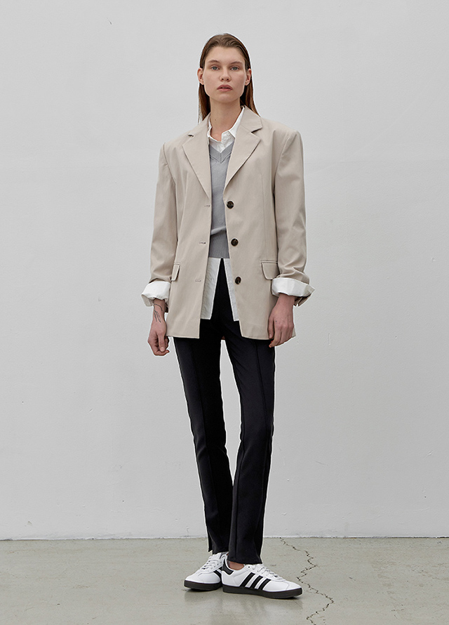 바지 중심에 핀턱으로 포인트주어 밋밋하지 않고