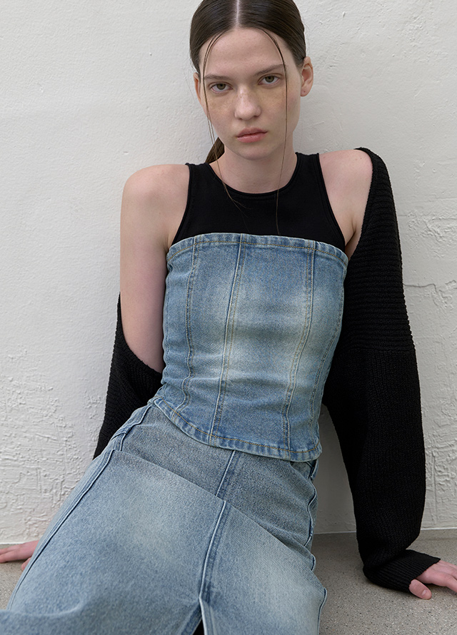 (VT-0257)GREYISH BLUE DENIM BUSTIER