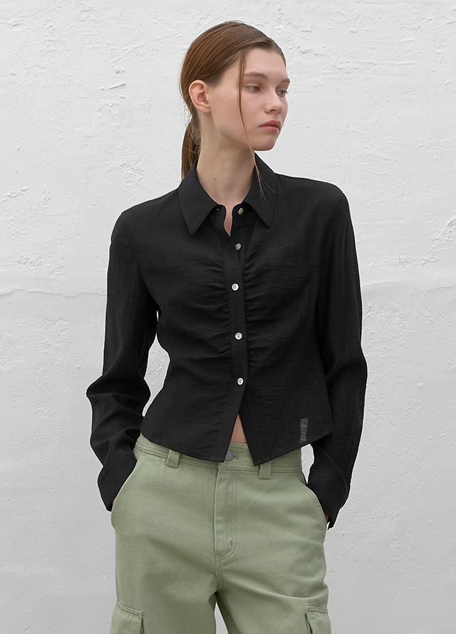 (BL-4196)WRINKLE SHIRRING SLIM SHIRT