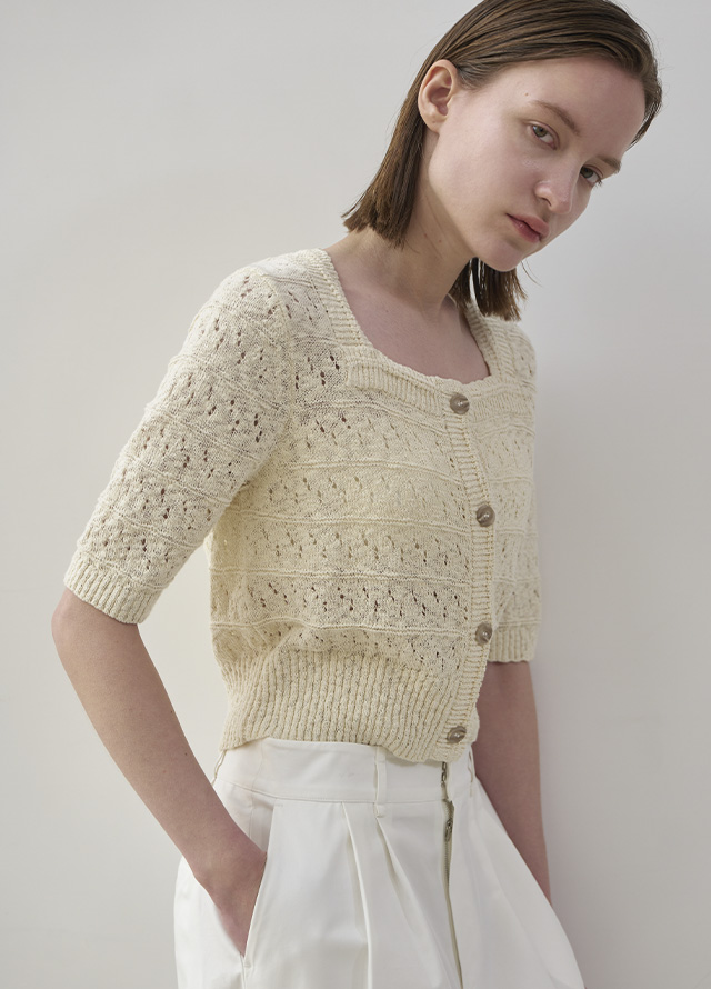 스카시 변형 조직으로 포인트를 준 니트 가디건입니다.