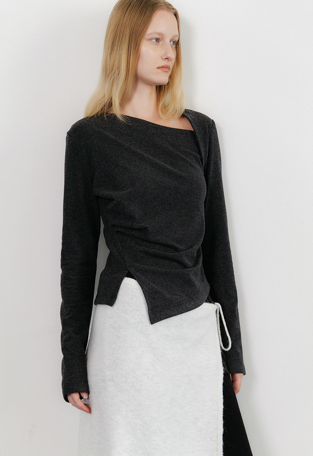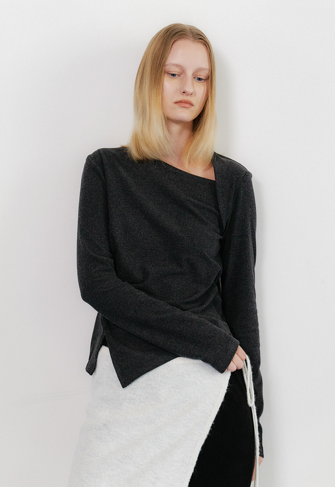 (ZT-6949)ASH OBLIQUE LINE TEE