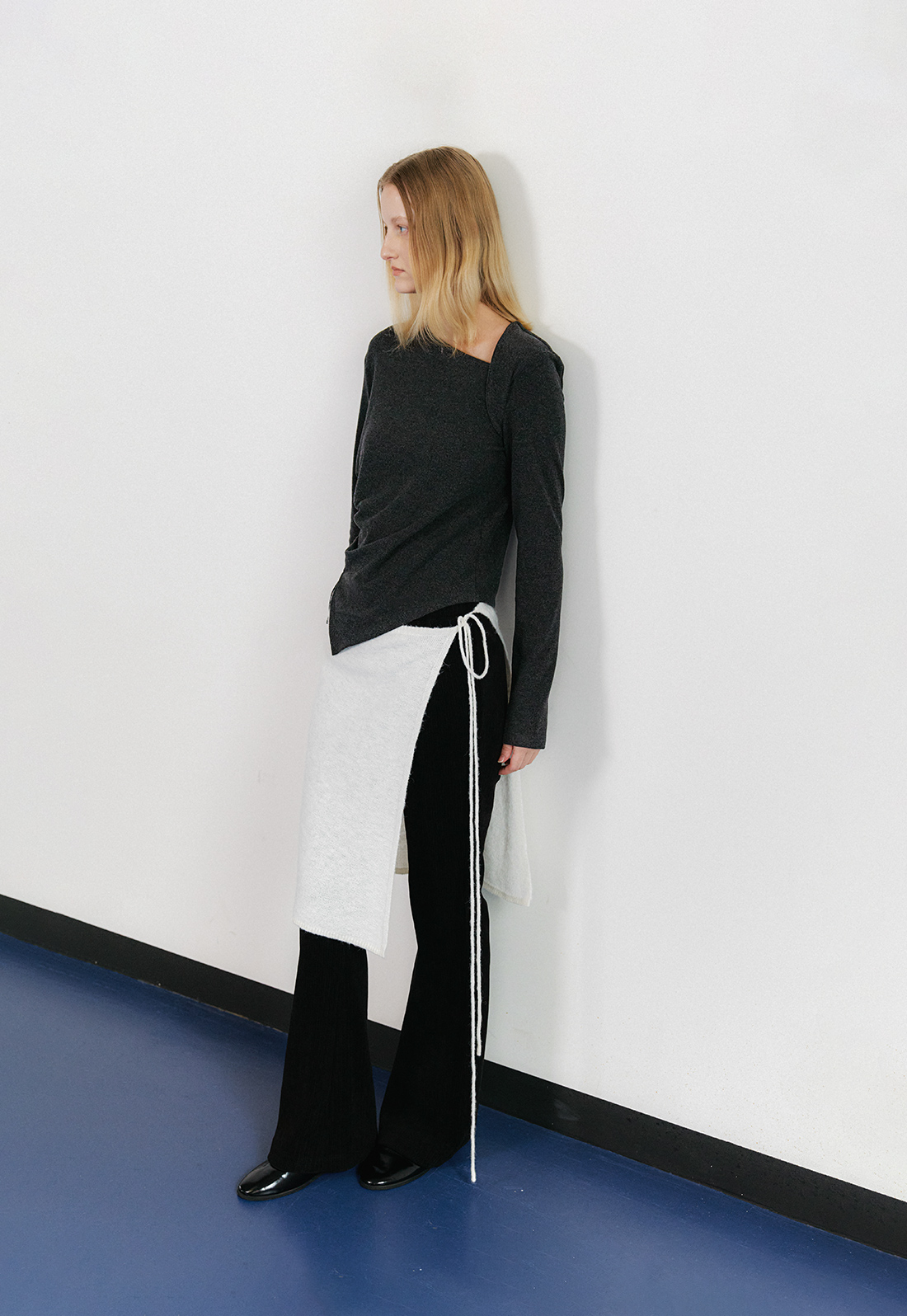 앞 절개와 사선 네크로 캐주얼한 무드도 함께 보여지는 아이템입니다.