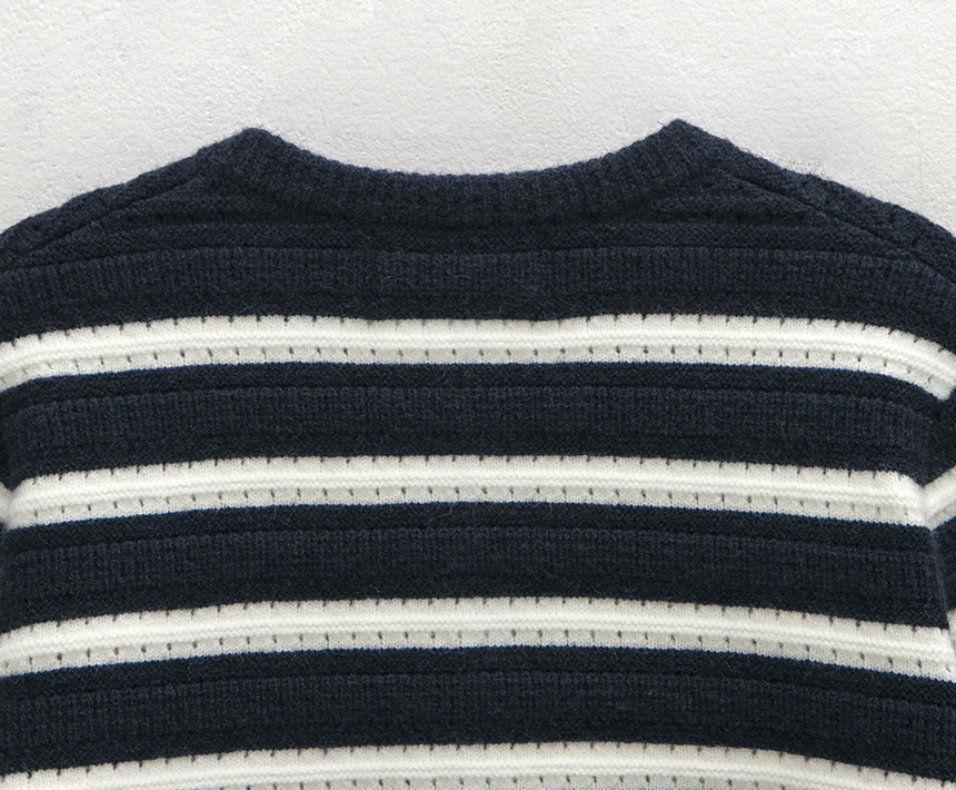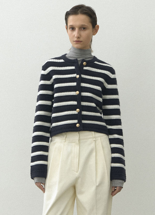 스트라이프 라운드넥 자켓형 가디건입니다.