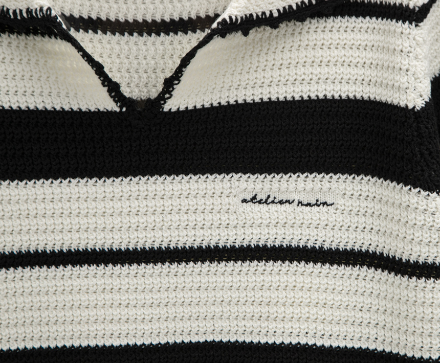 (T-7015)SKASHI COLLAR STRIPE KNIT