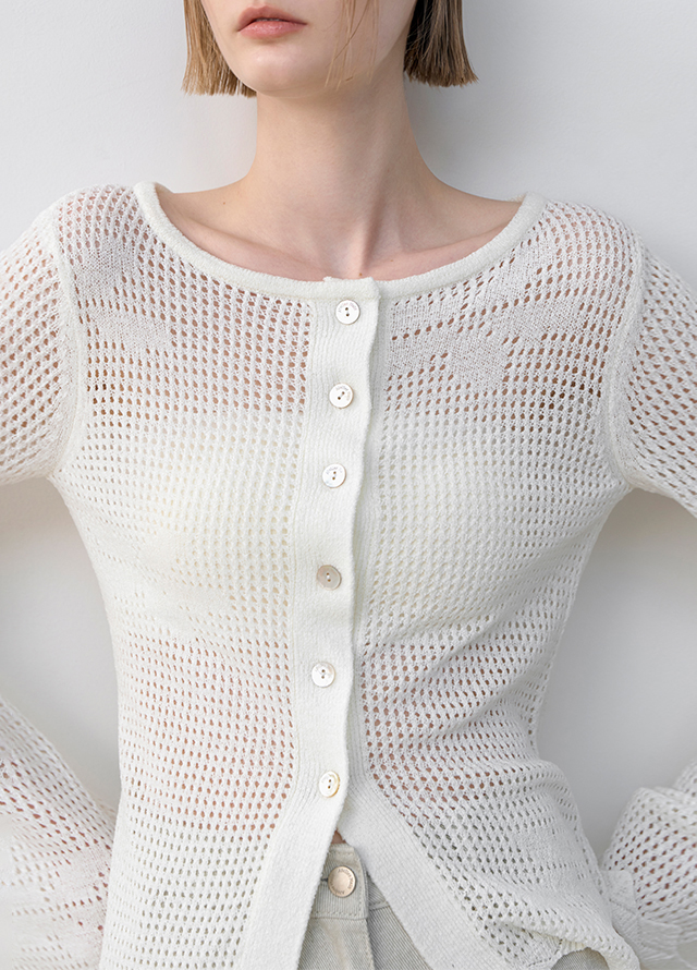 플라워자카드에 스카시조직이 변형된 루즈핏 니트 가디건입니다.