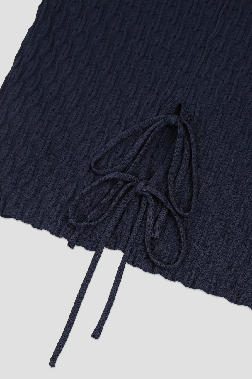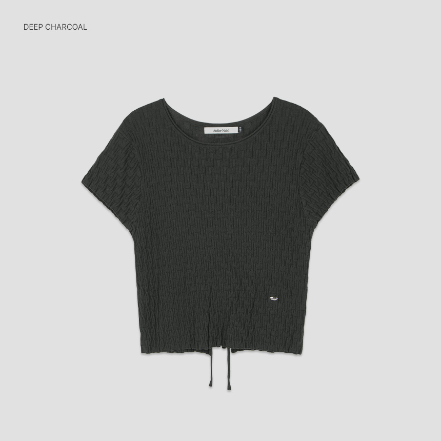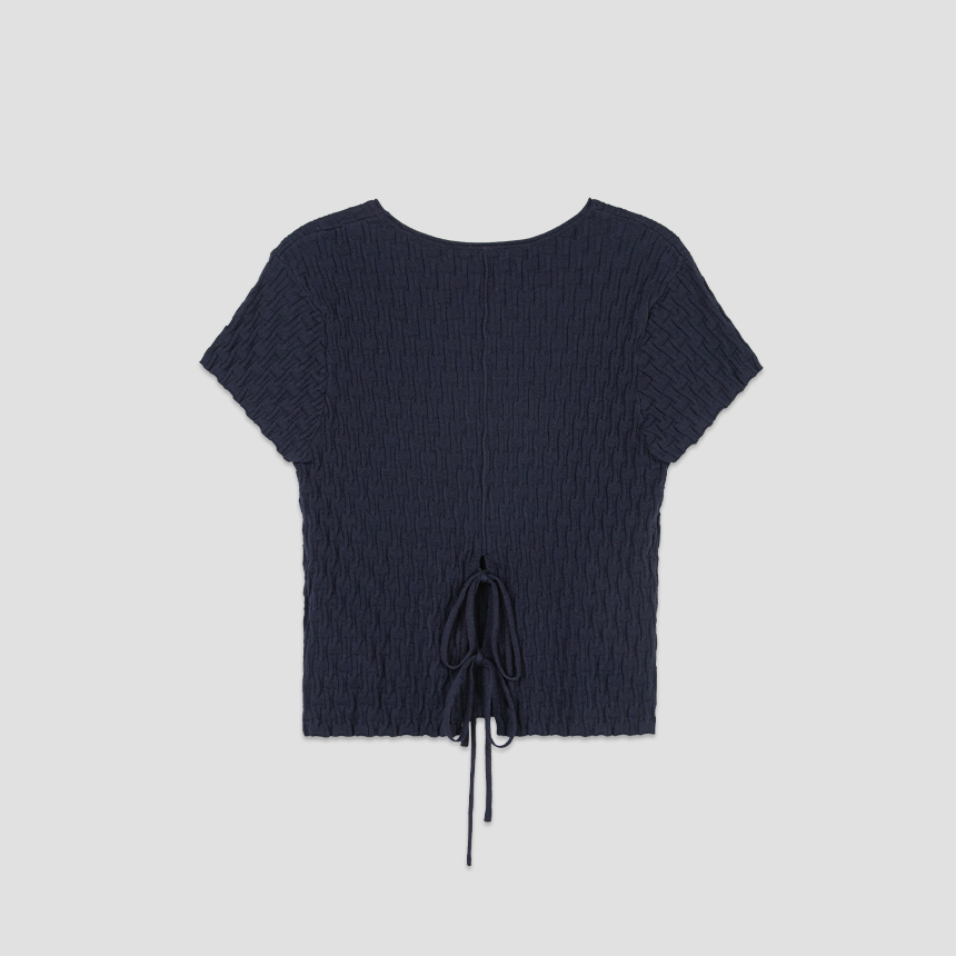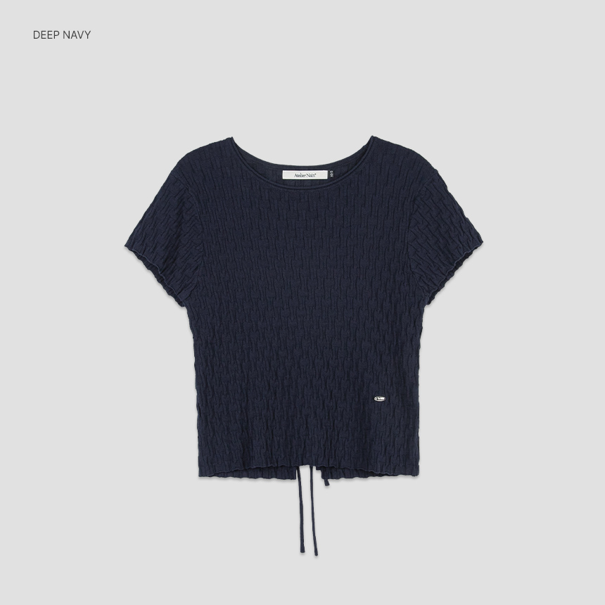 조직감이 돋보이는 백 스트링 크롭 니트 탑입니다.