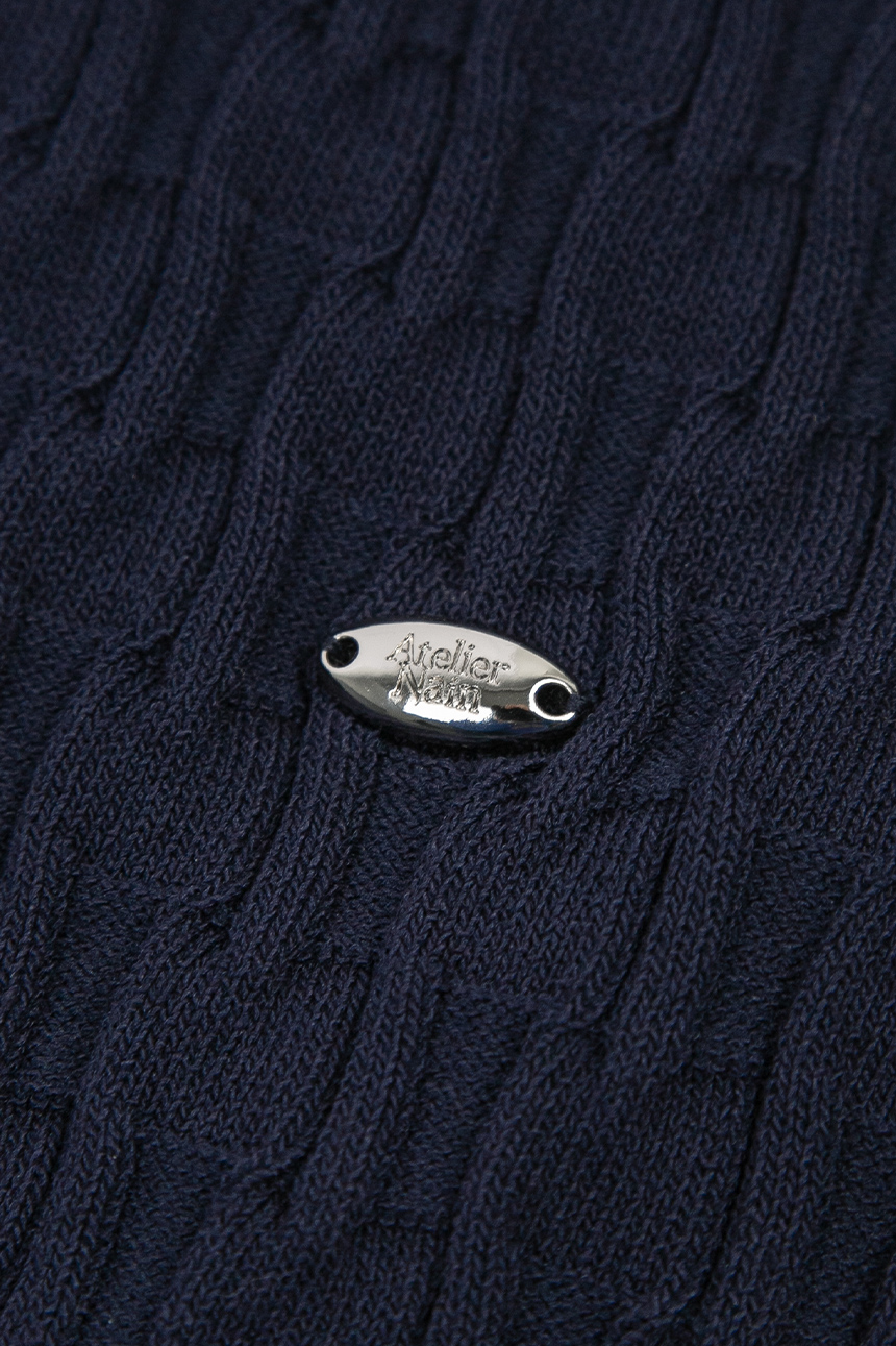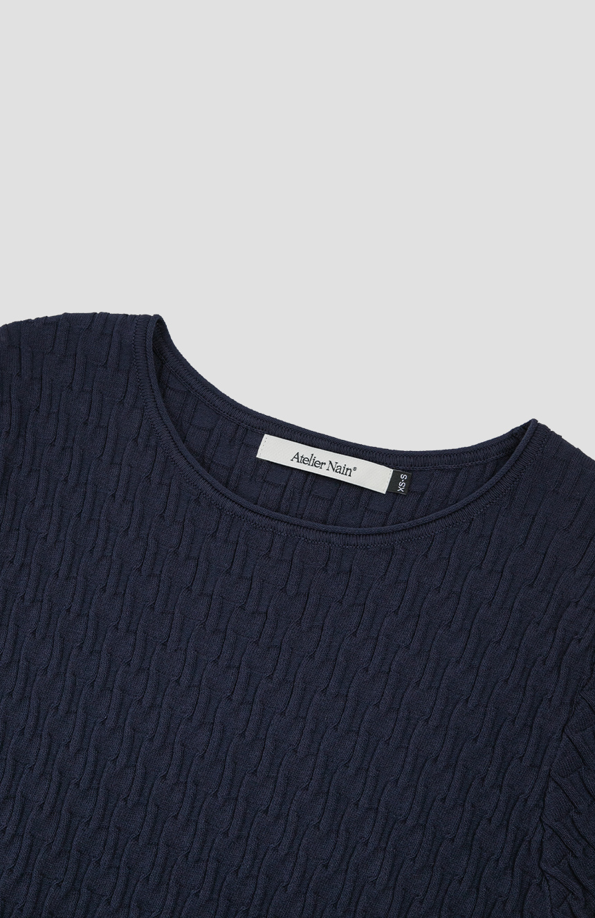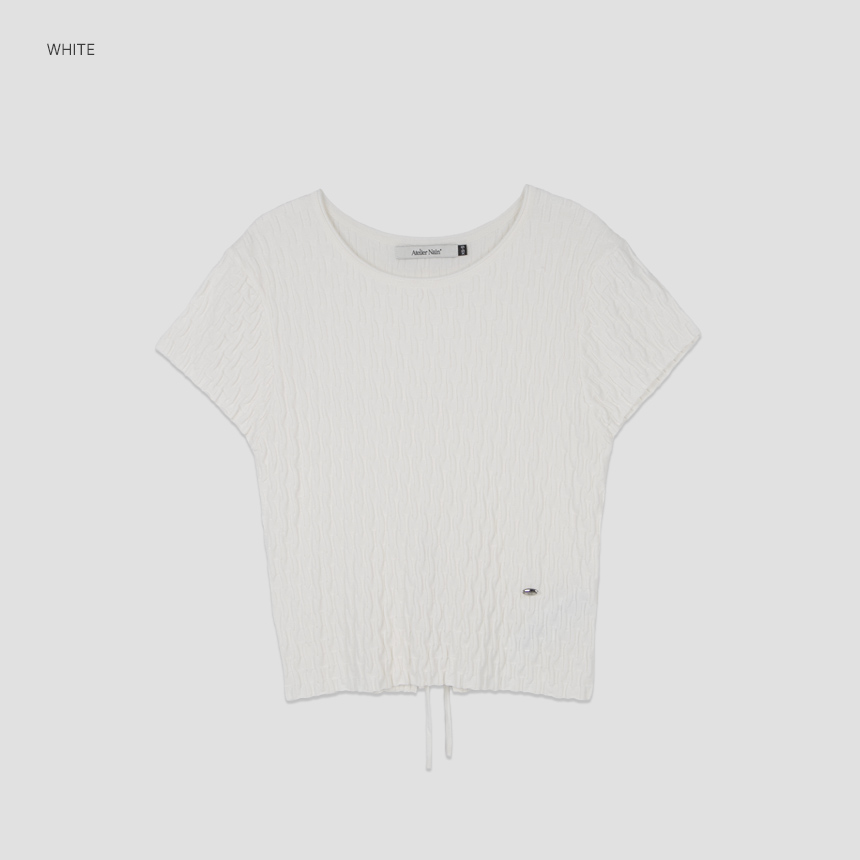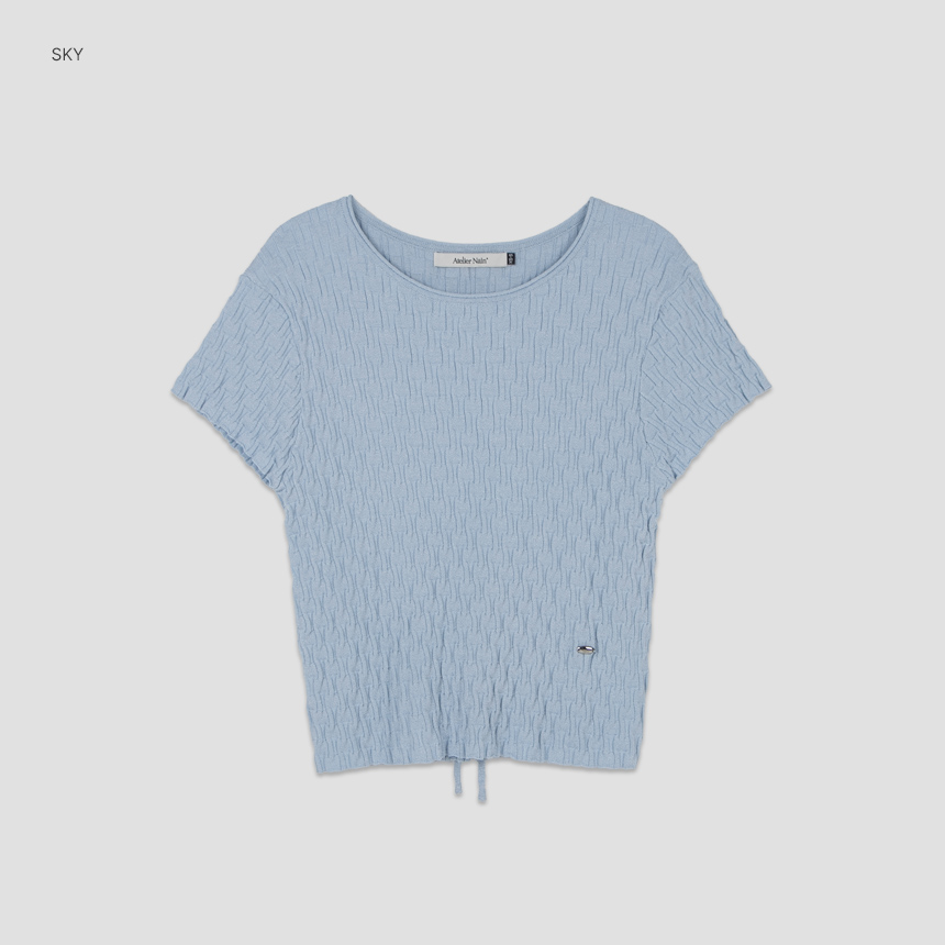조직감이 돋보이는 백 스트링 크롭 니트 탑입니다.