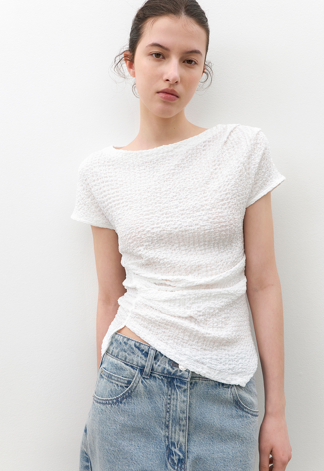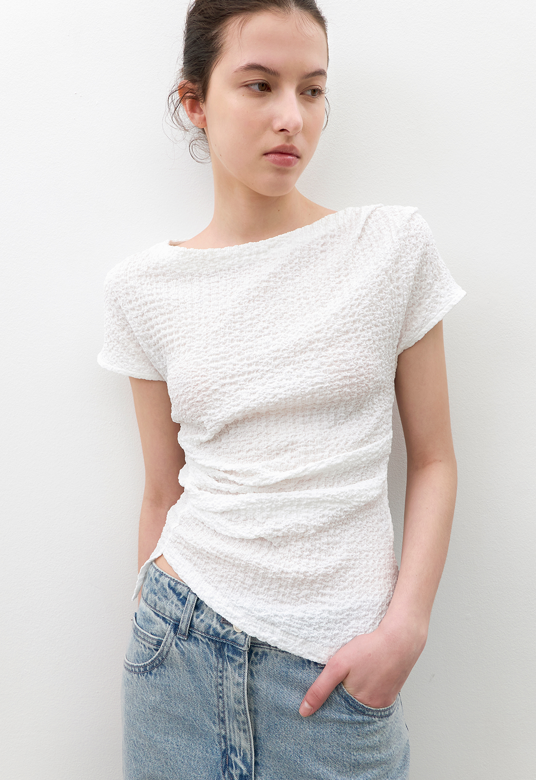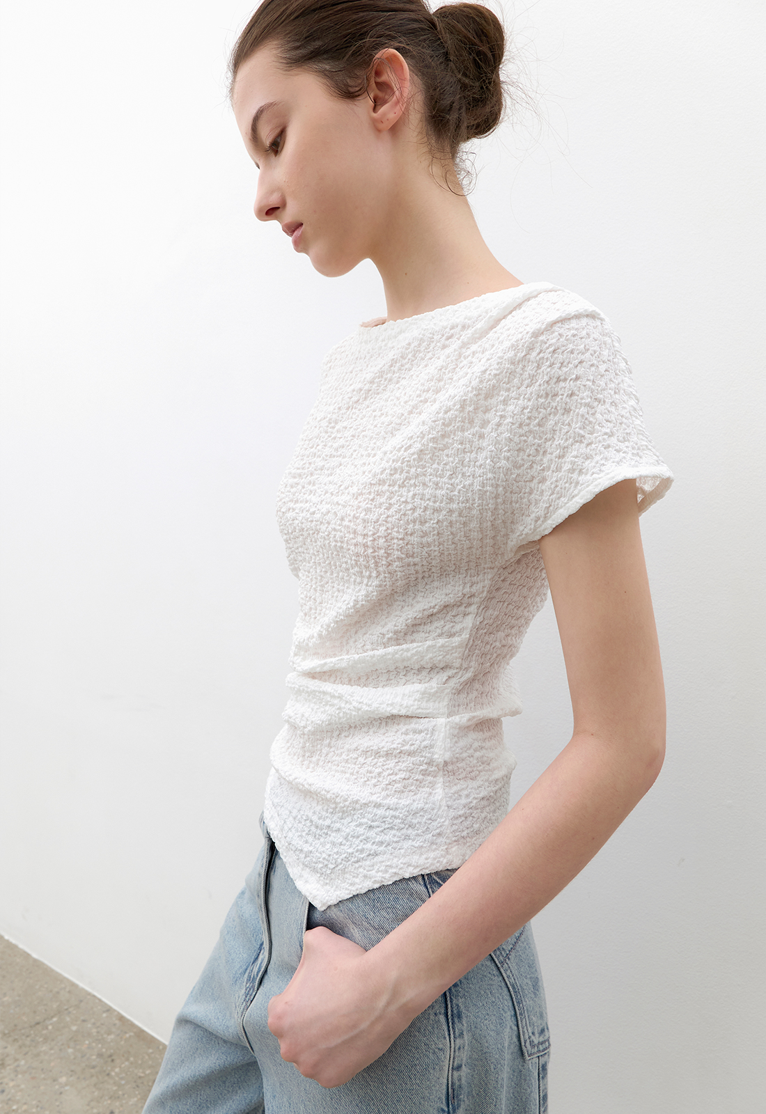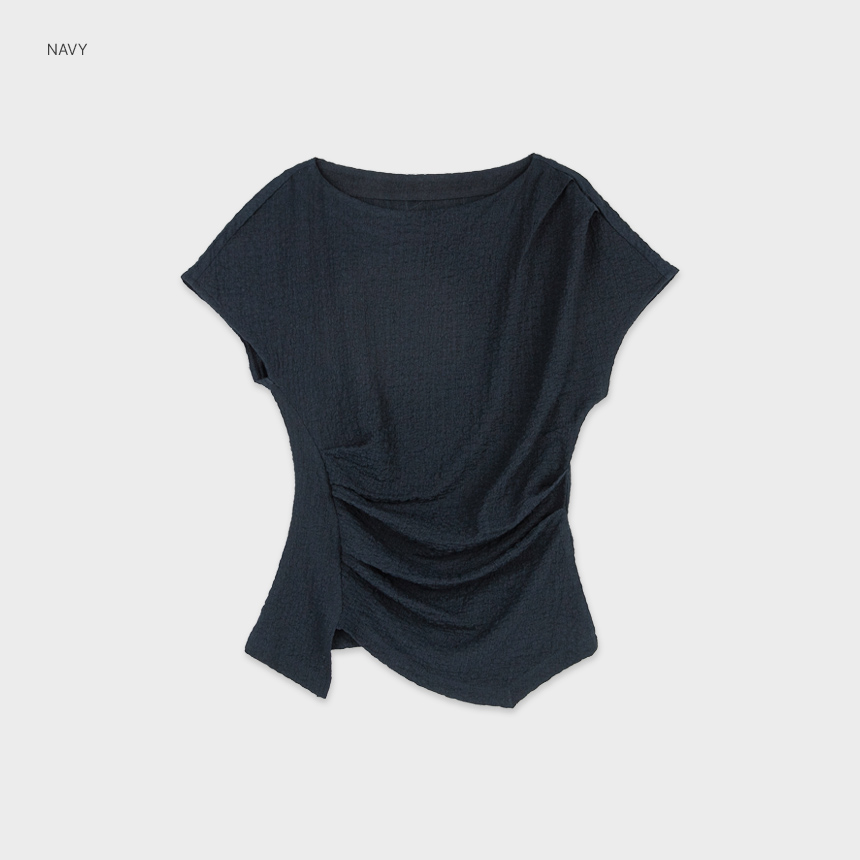 (Z-BL-4345)LOND CREASE TUCK UNBAL BLOUSE