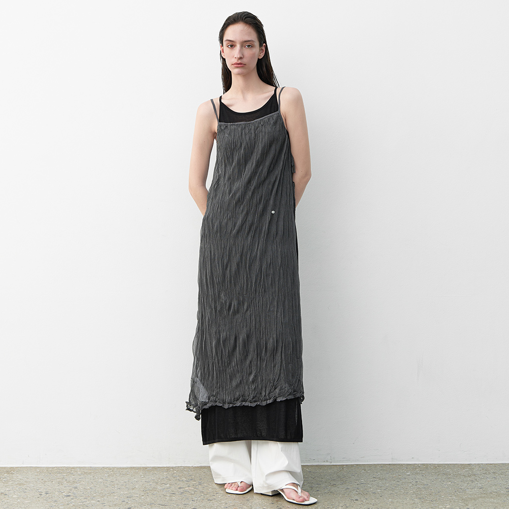 (OP-6289)SHEER WRINKLE LAYERED KNIT DRESS
