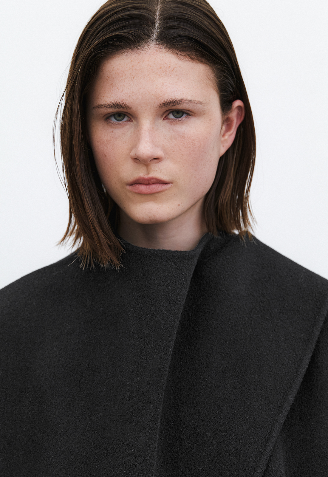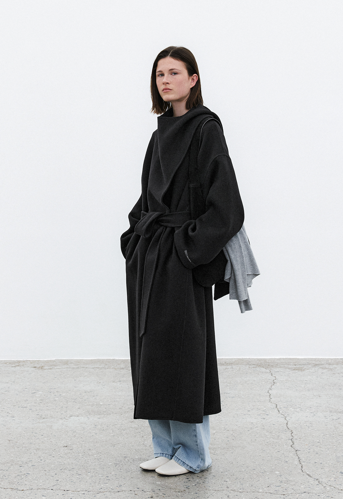 (CT-1459)DRAPE SCARF WOOL HANDMADE COAT S