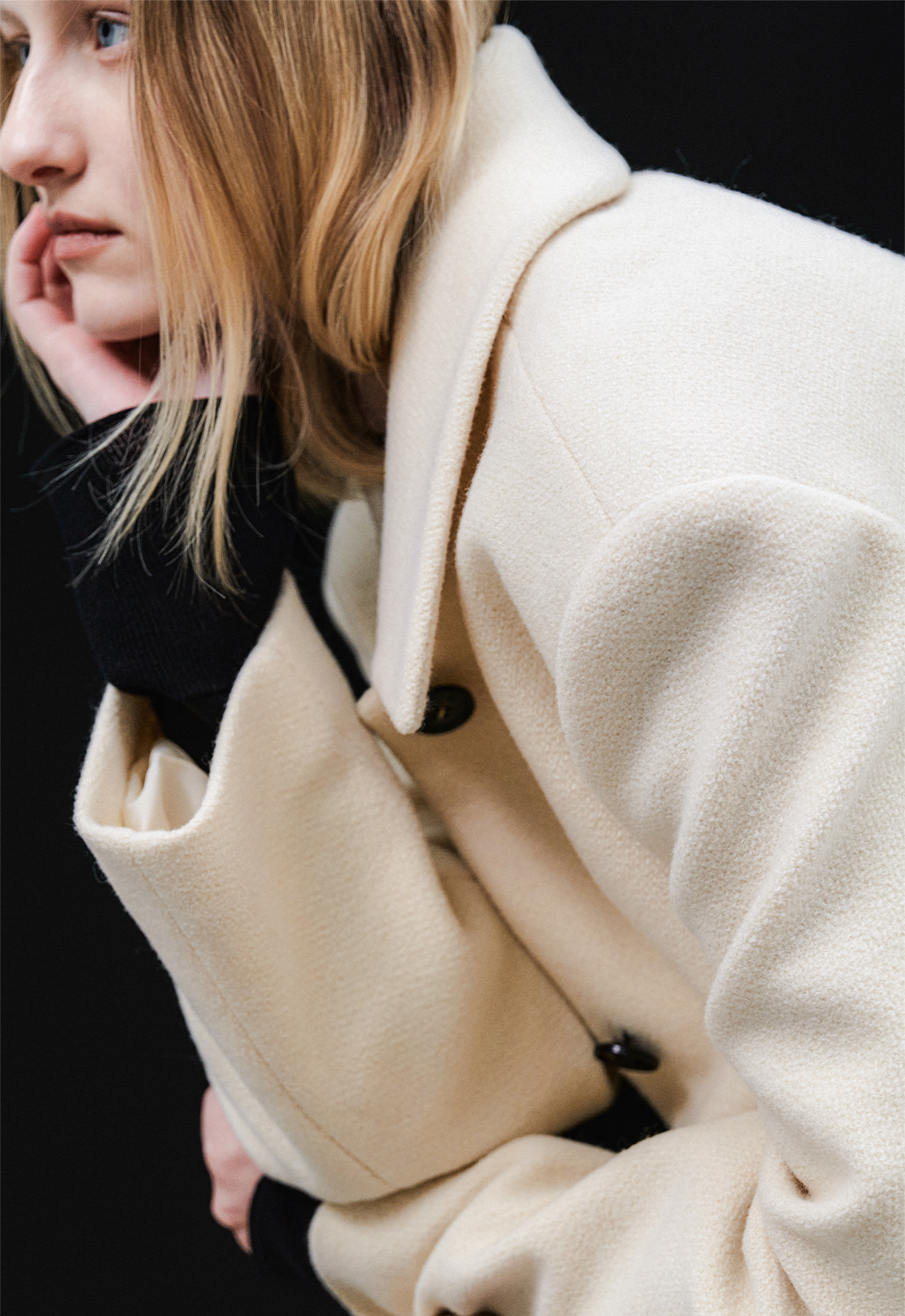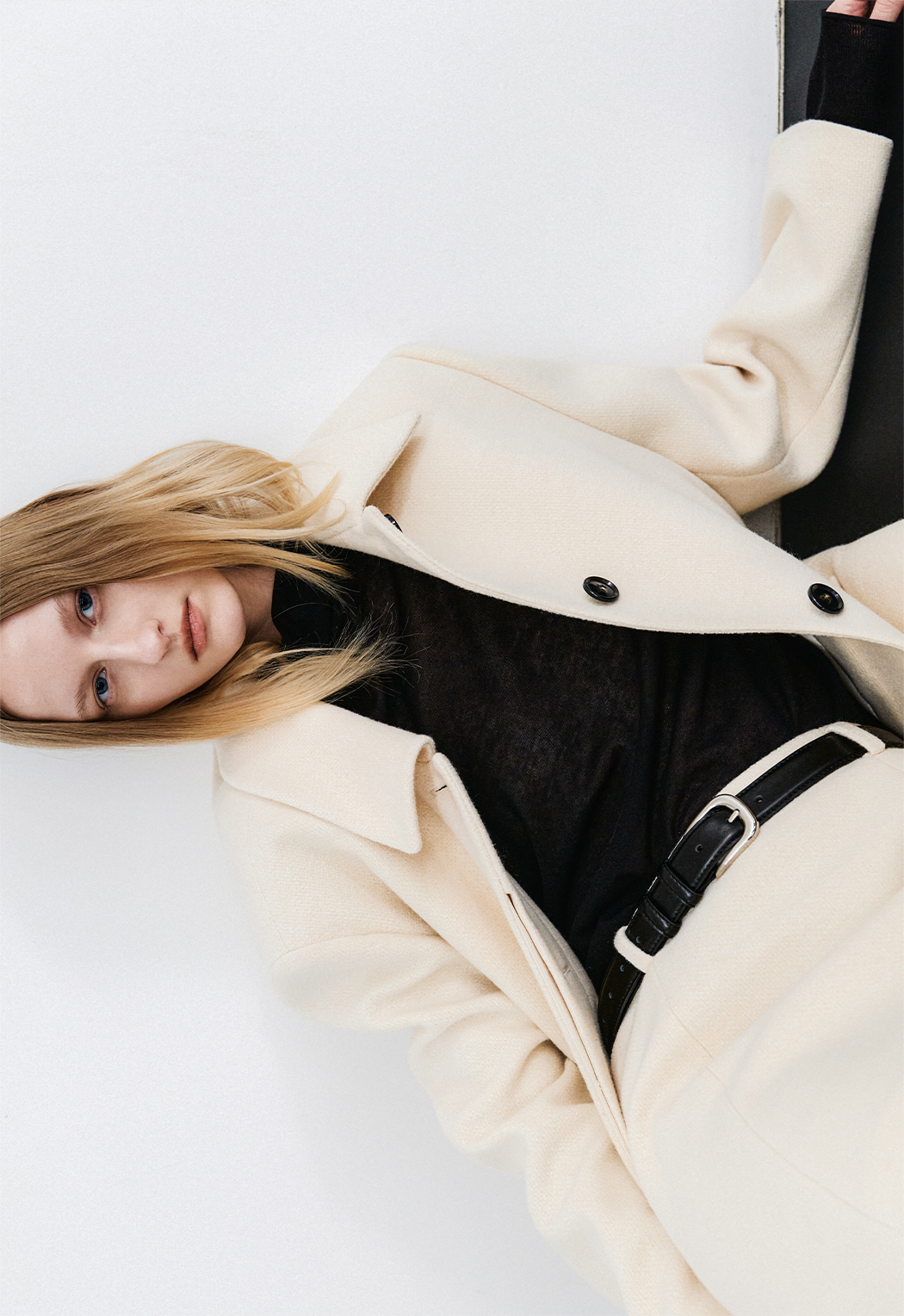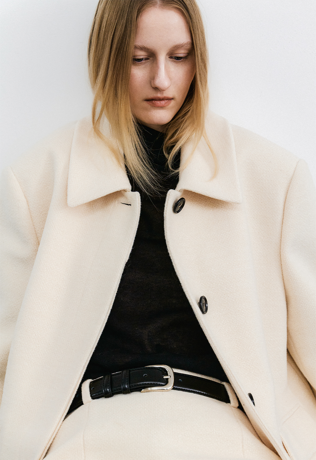 깔끔한 카라 디자인과 심플한 싱글 버튼 클로징으로