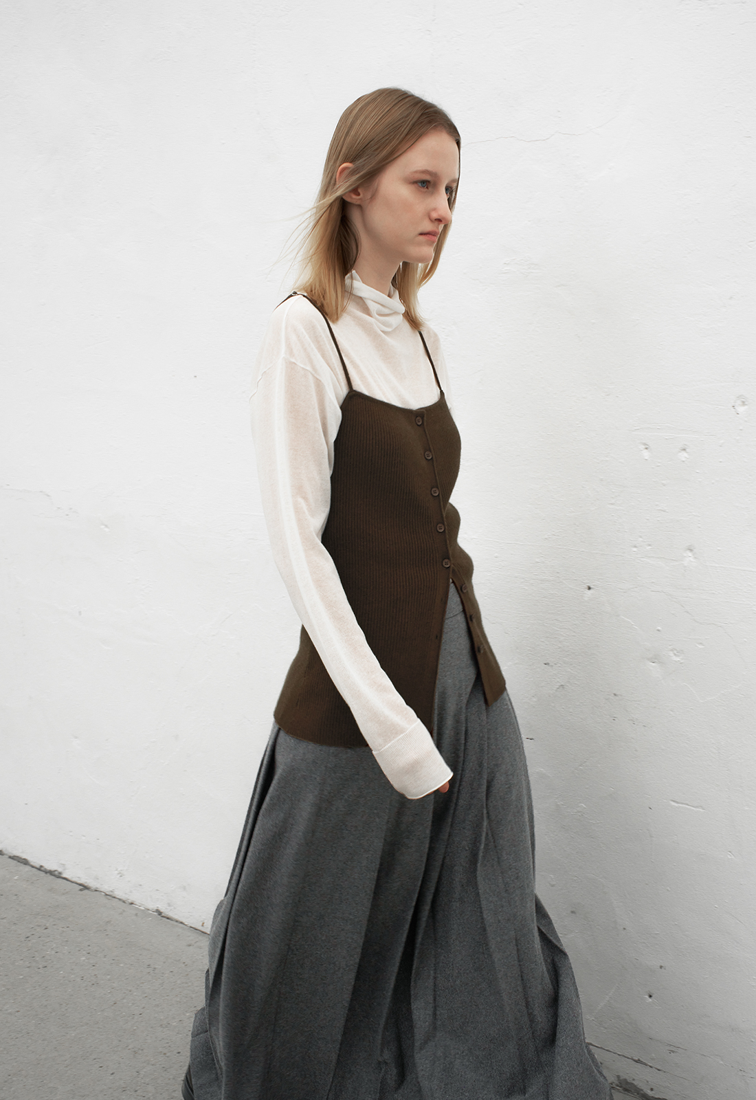슬림한 실루엣의 골조직 뷔스티에 입니다.