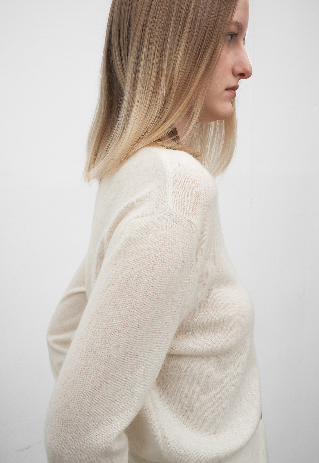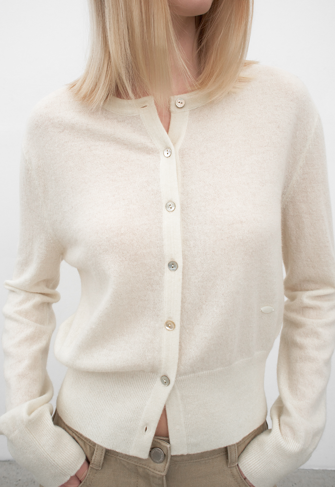 울 함량이 높은 원사로 제작된 기본 슬림핏의 ESSENTIAL 가디건입니다.