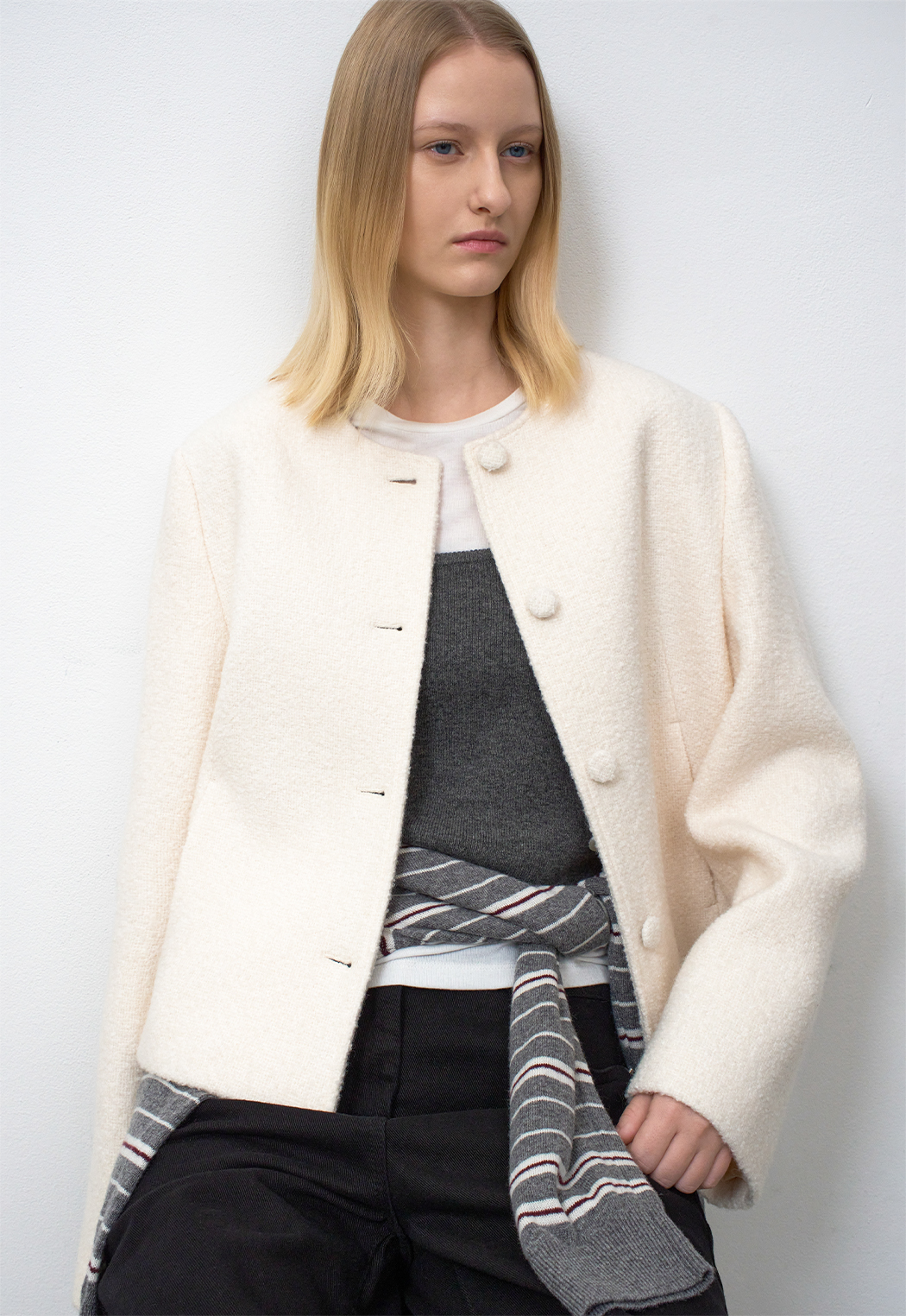 제원단 싸개 단추로 간결함을 보여주는 아이템입니다.