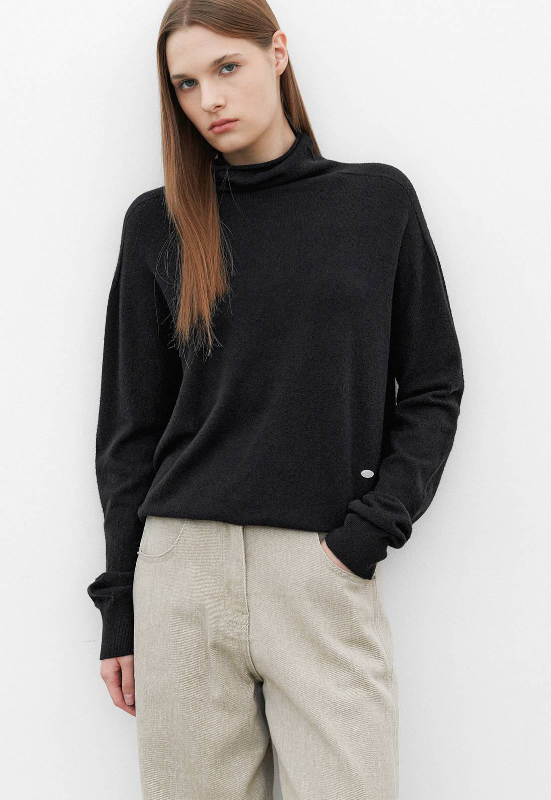 (T-7140)ESSENTIAL WHOLE GARMENT LOOSE FIT HIGH NECK KNIT