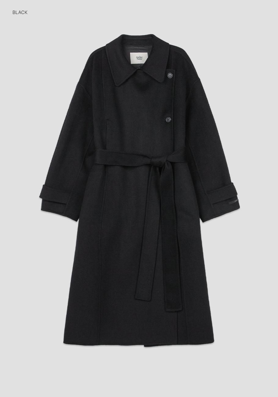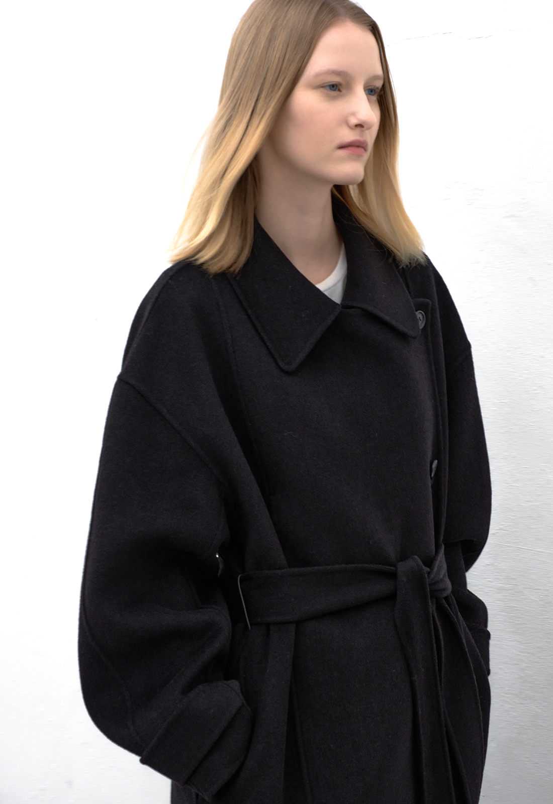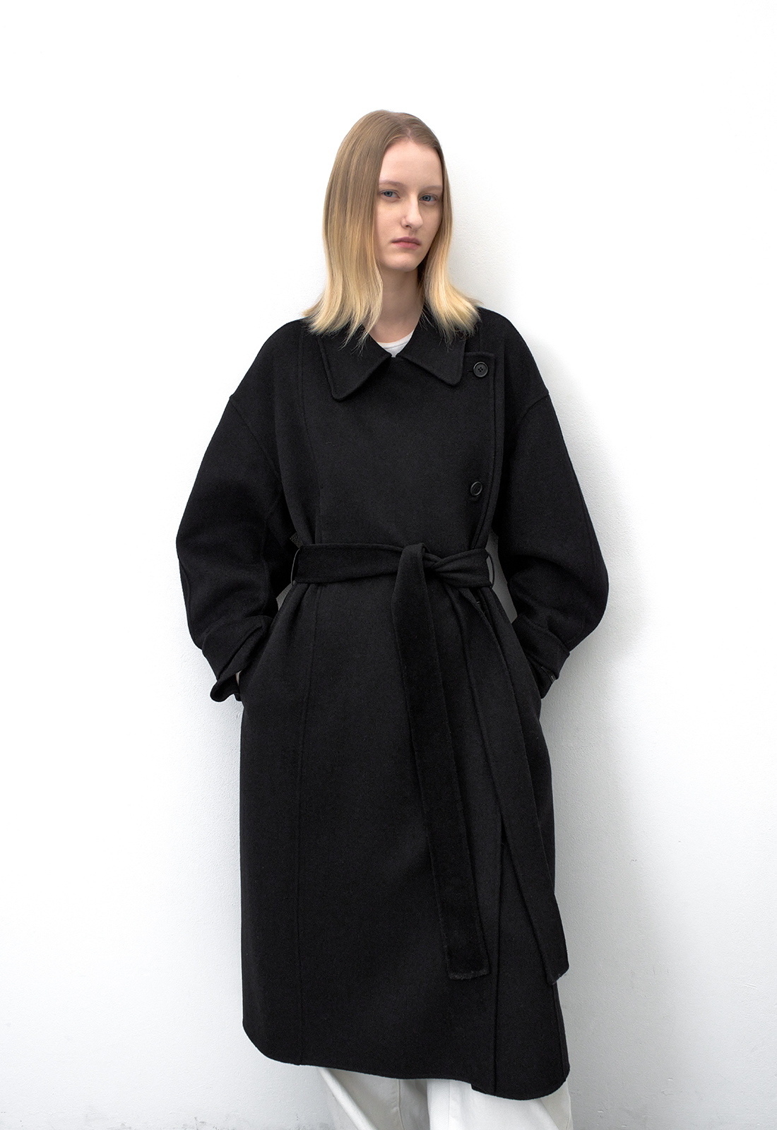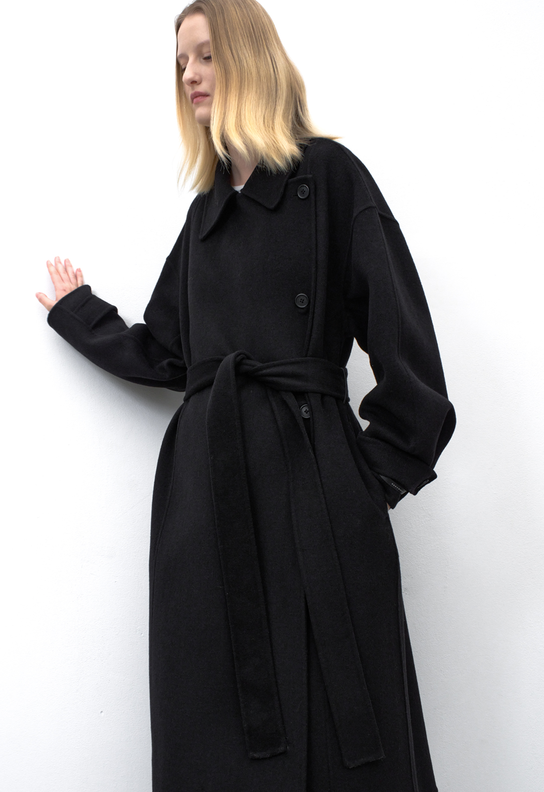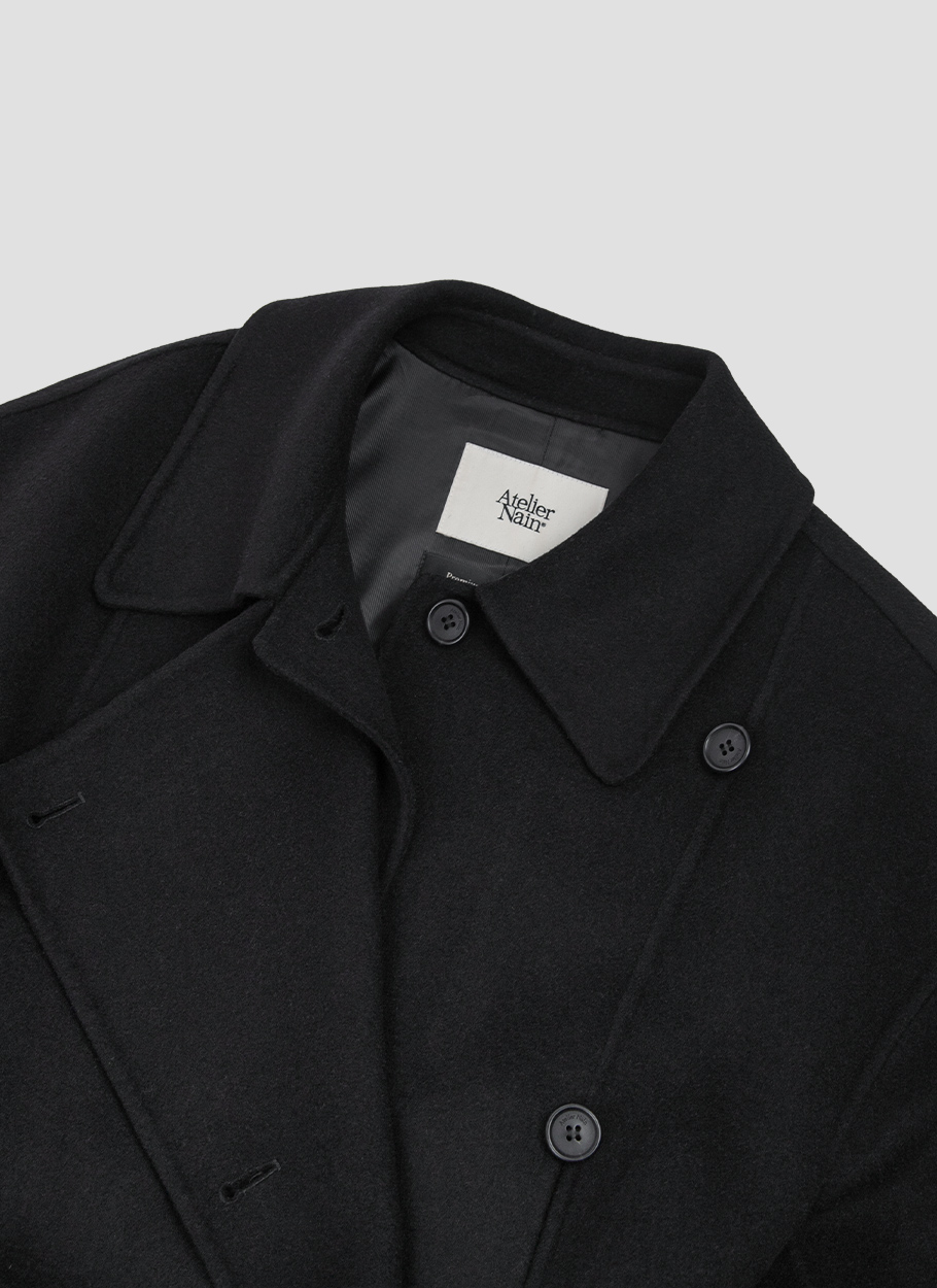 앞단작 여밈이 몸을 완전히 덮는 더블 코트입니다.