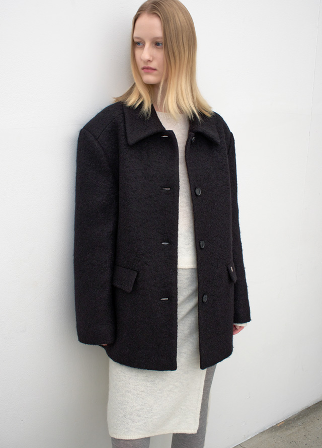 포근한 울 혼방으로 부드러운 부클 표면이 돋보이는 반코트입니다.