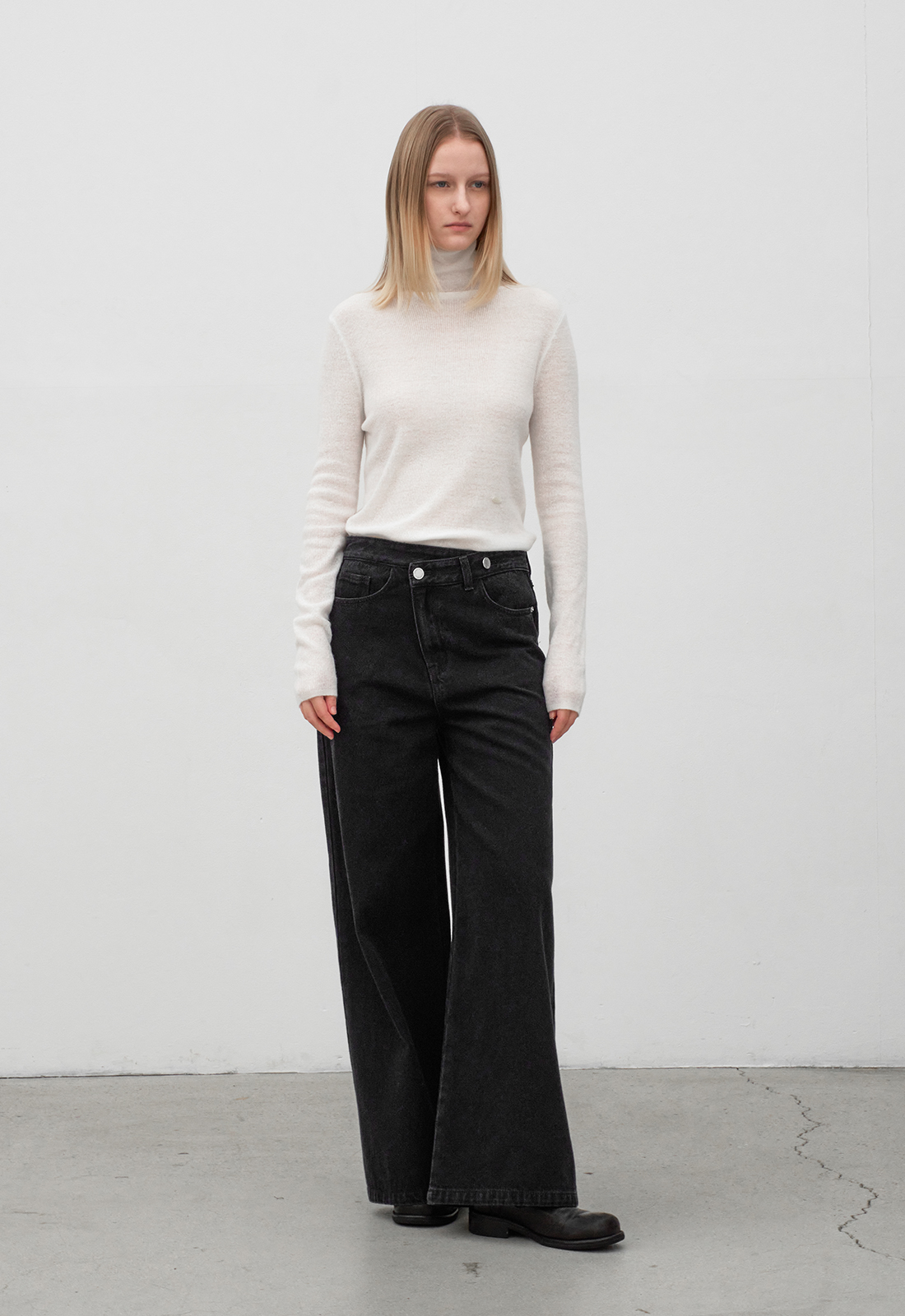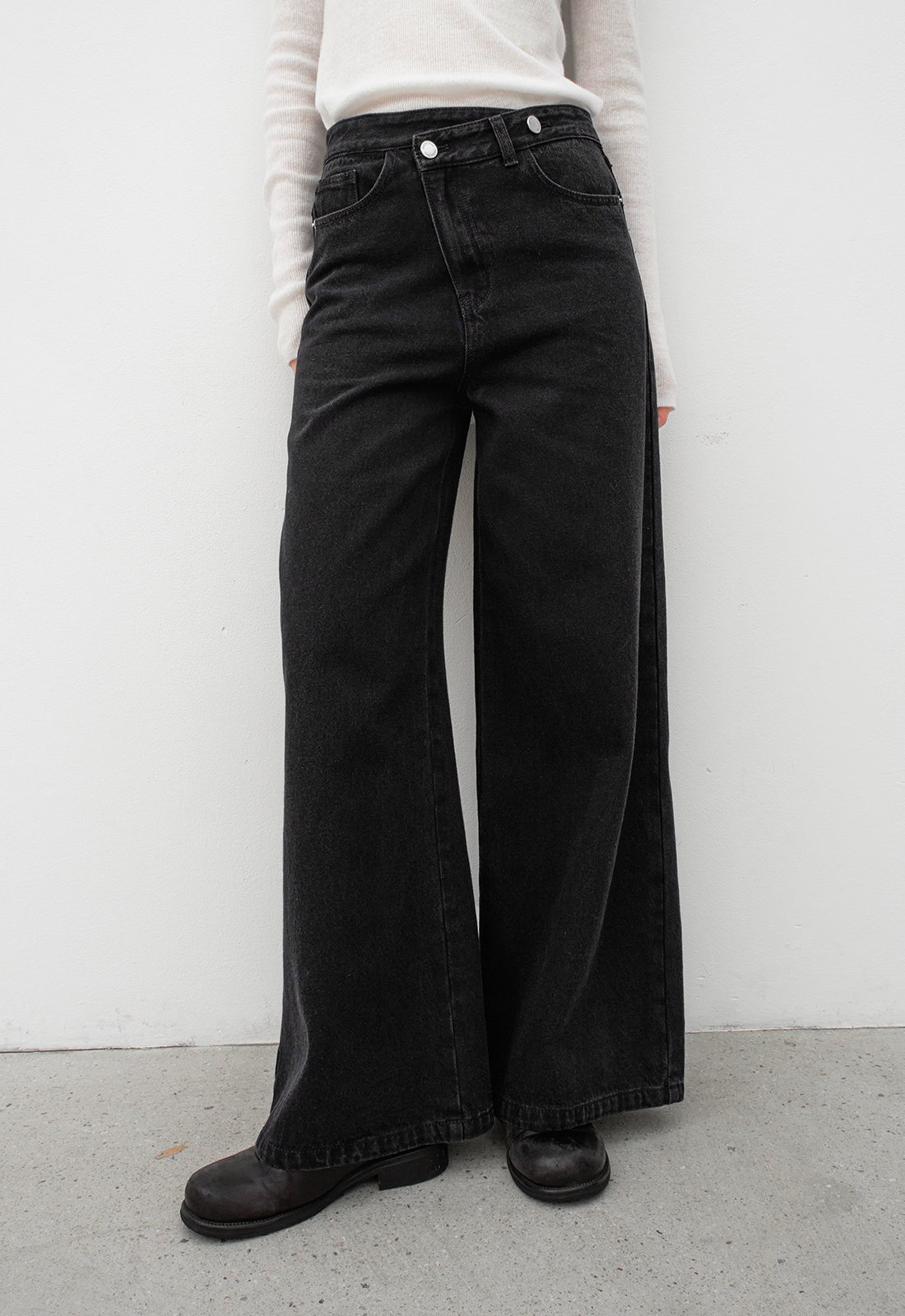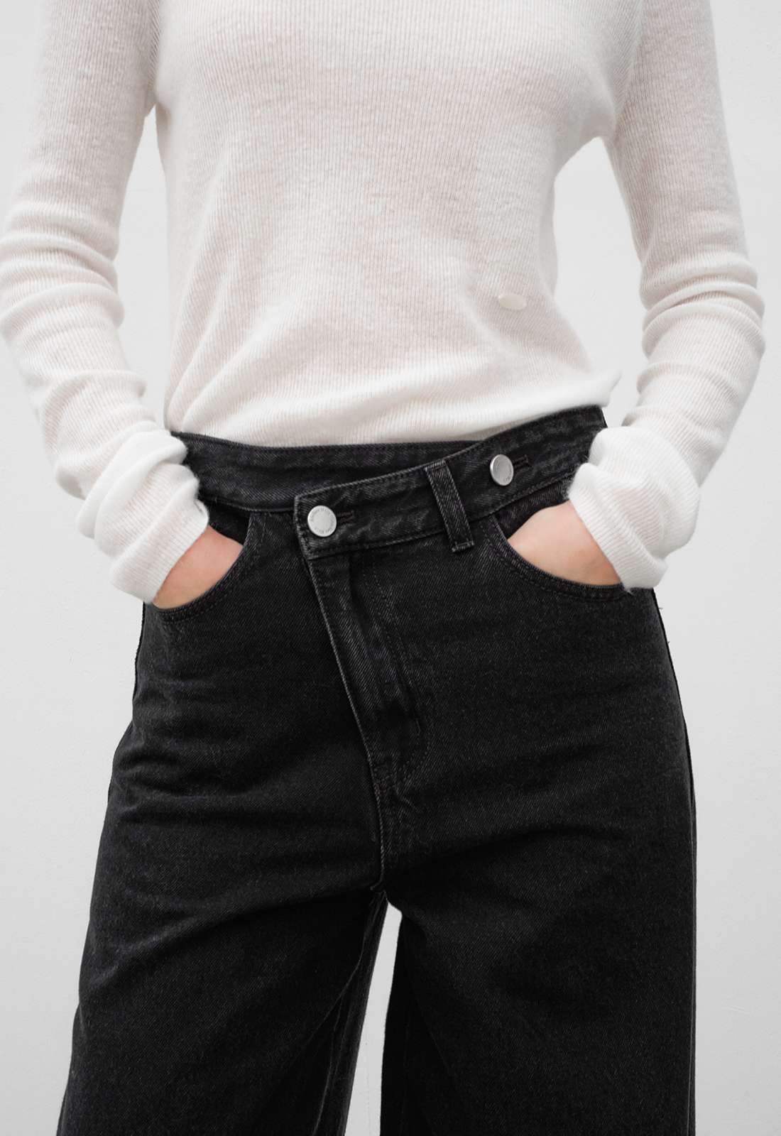 심플한 블랙 데님에 사선 오비 디테일을 더해