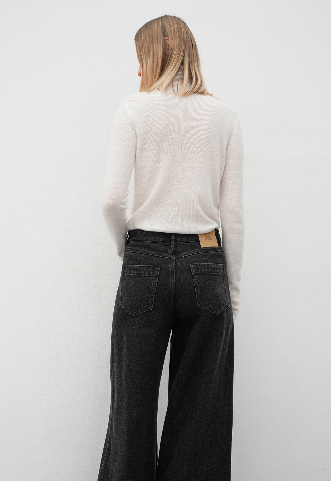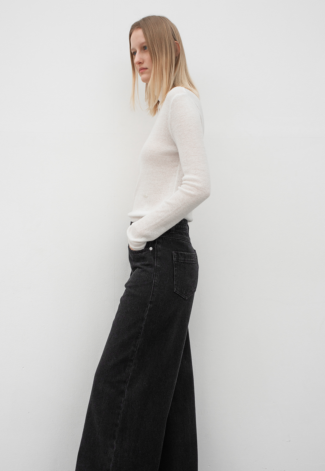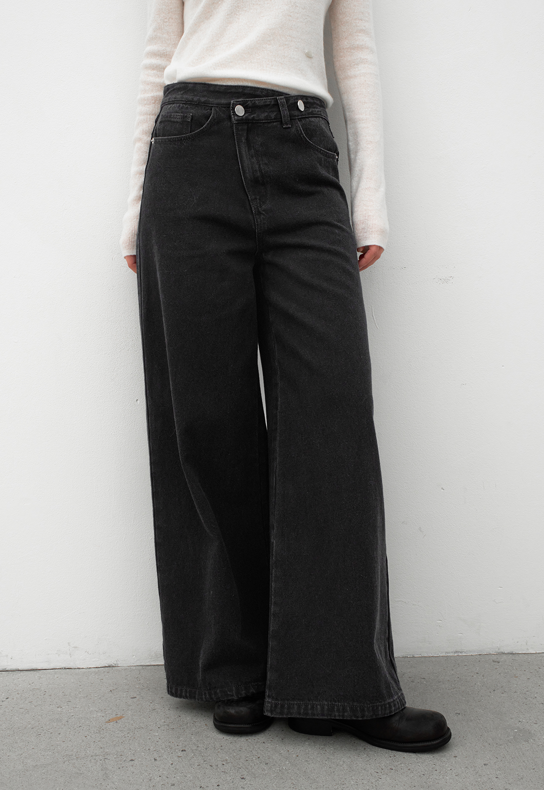 심플한 블랙 데님에 사선 오비 디테일을 더해