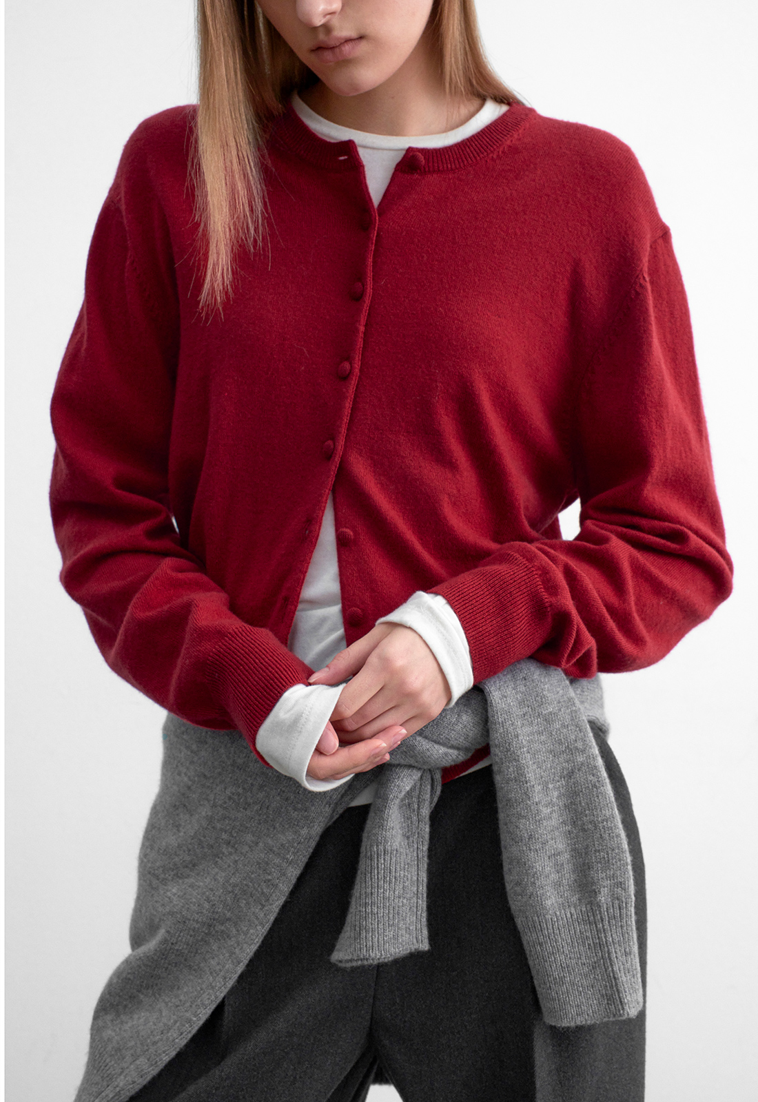 (CD-2237)ESSENTIAL ROUND KONG BUTTON CARDIGAN