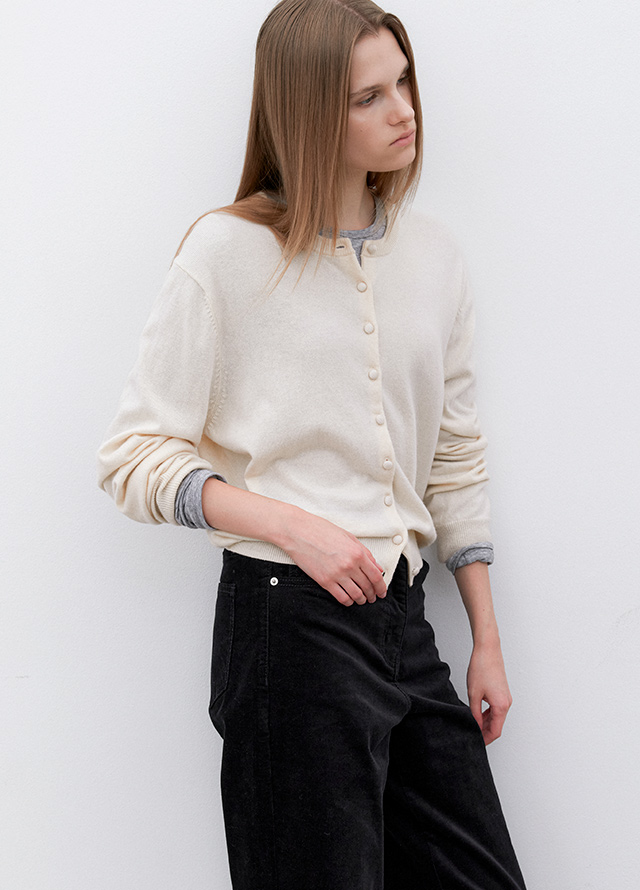 essential 무드의 라운드 가디건입니다.