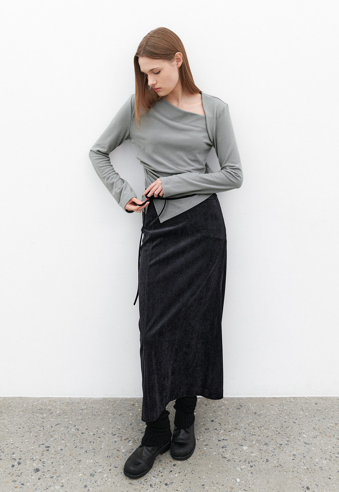 (SK-5064)CORDUROY STRING MAXI SKIRT S