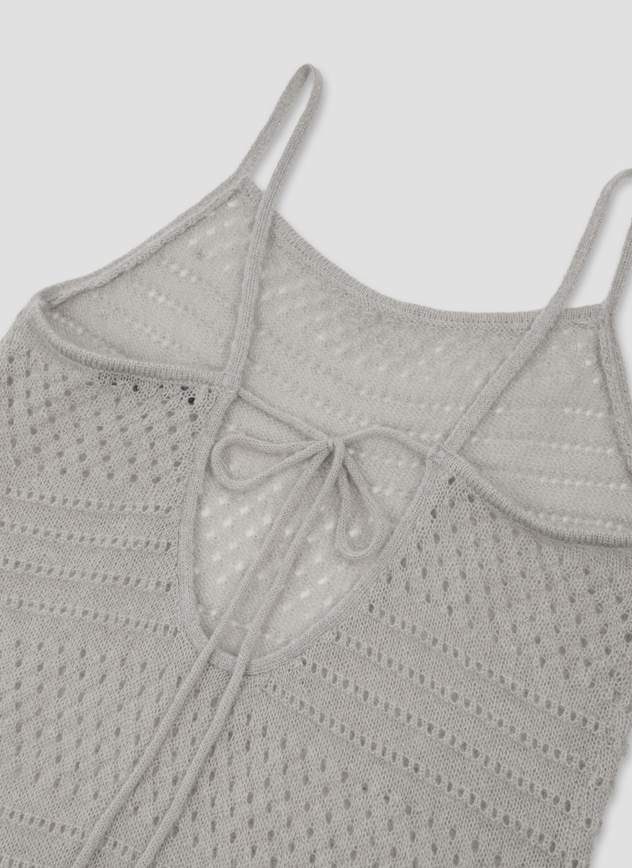 BACK SCOOP 디자인에 리본 스트링 장식이 더해져