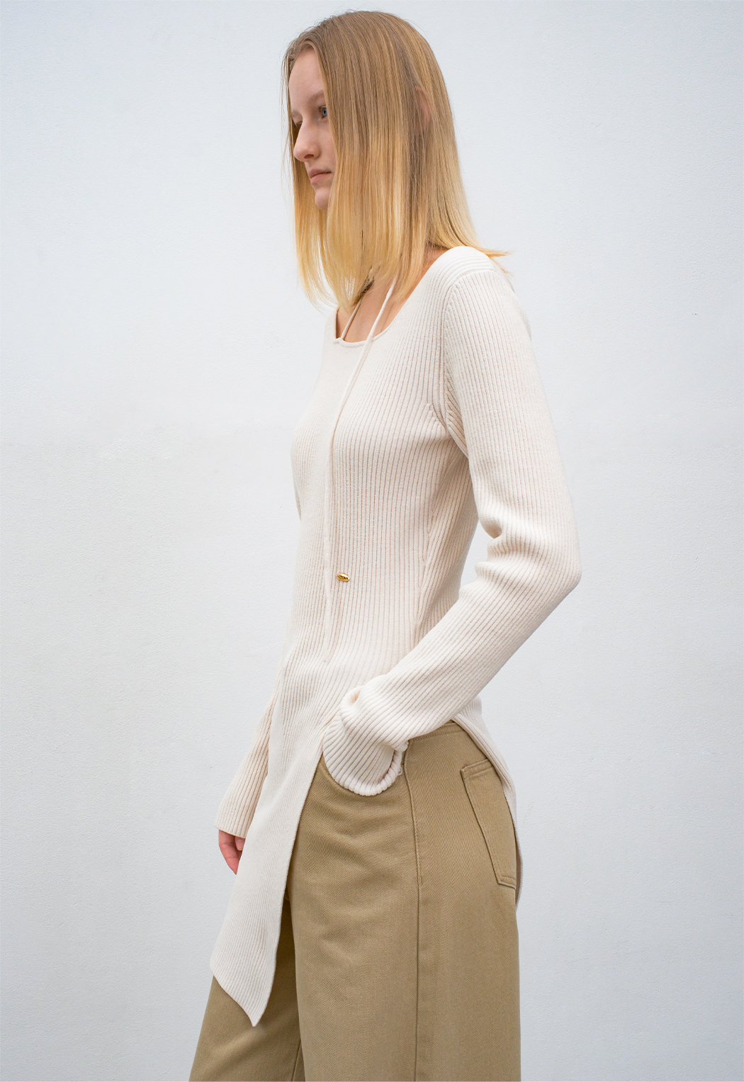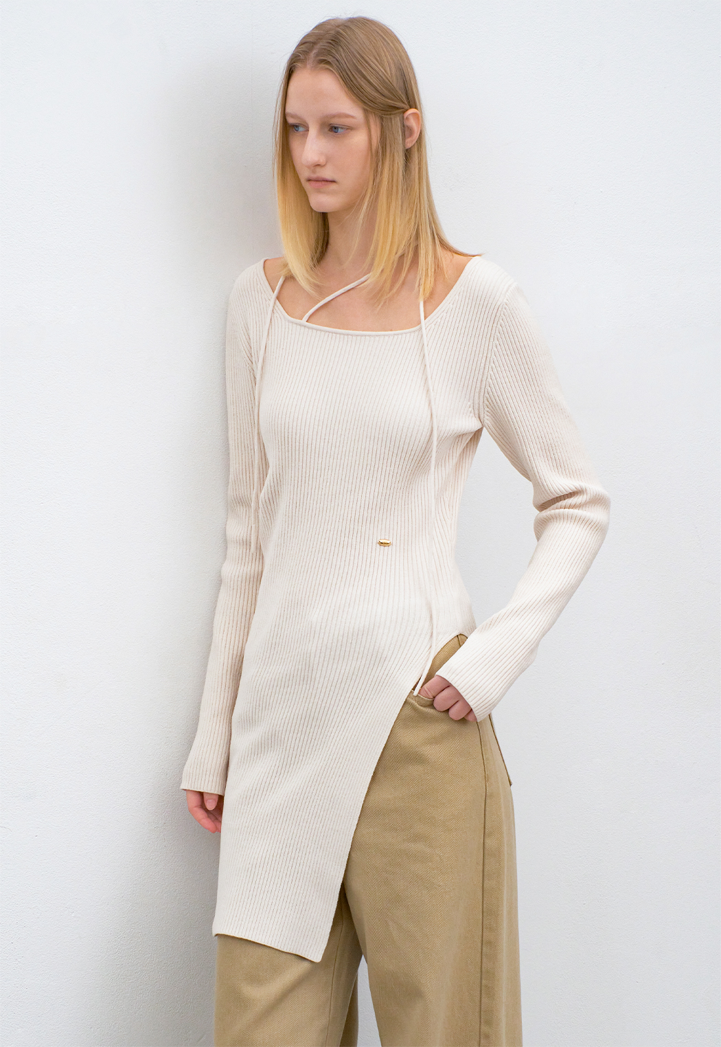 네크라인 리본끈 포인트와 사선트임으로 특별한 날,