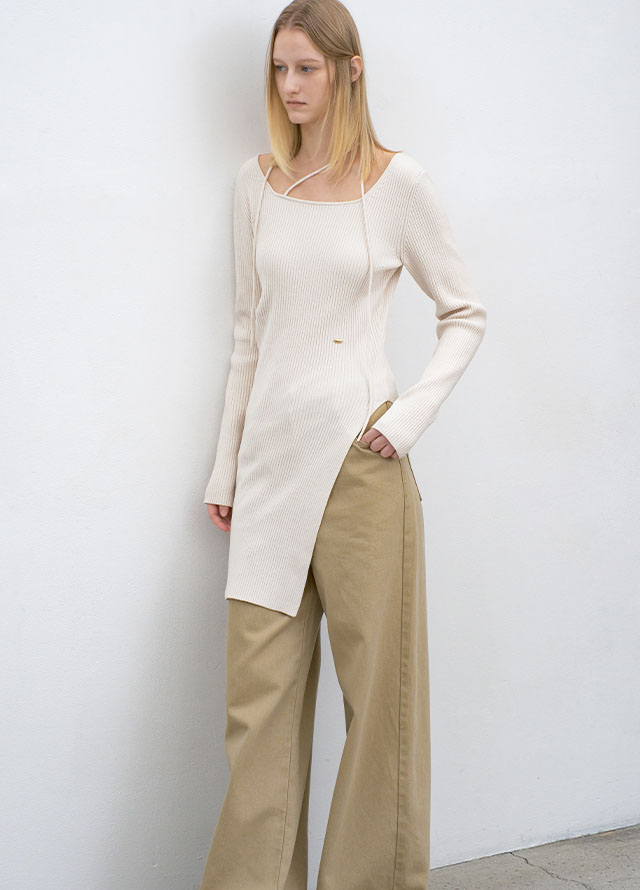 (T-7141)VELVET RIBBED STRAP LONG SLIM KNIT
