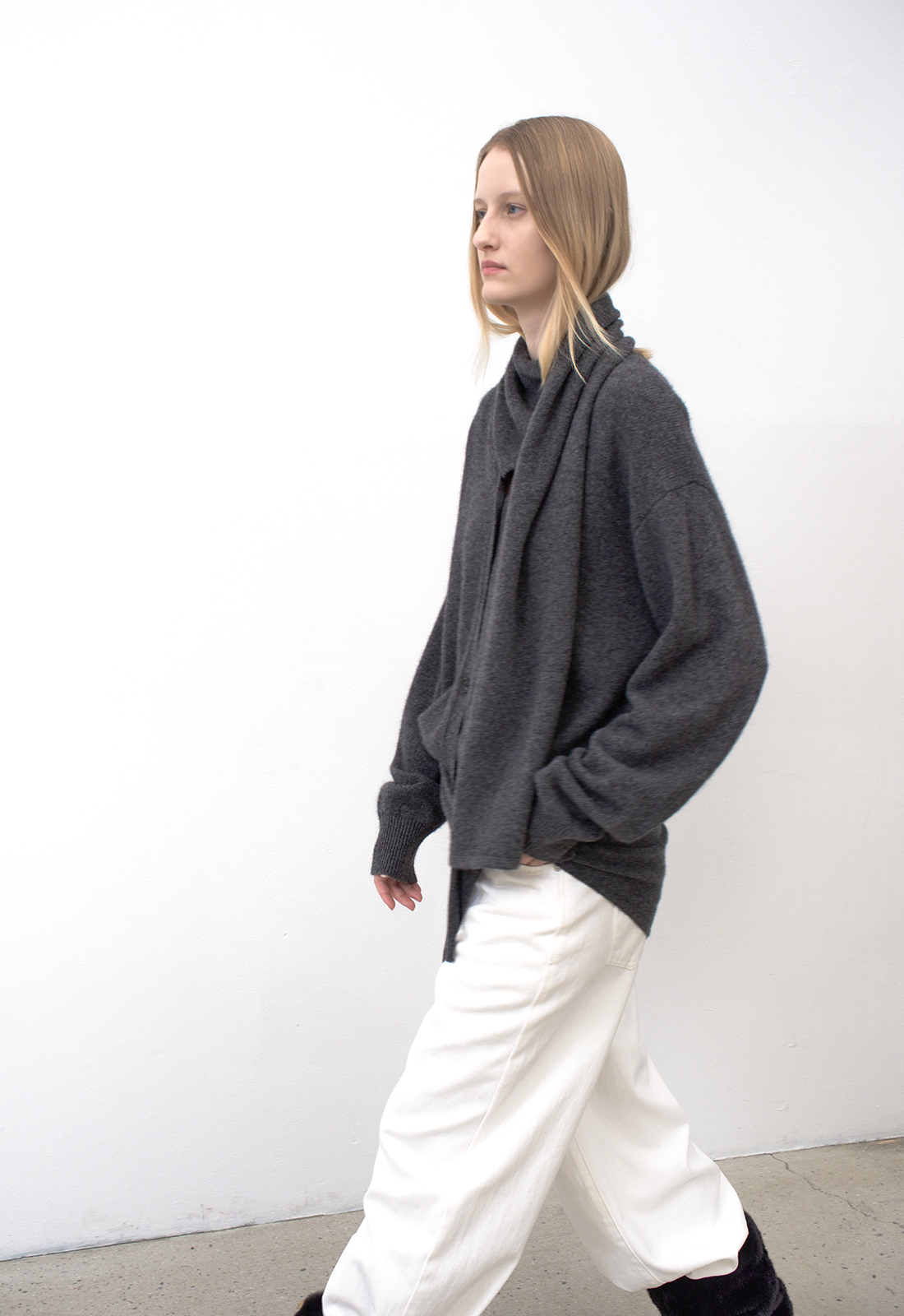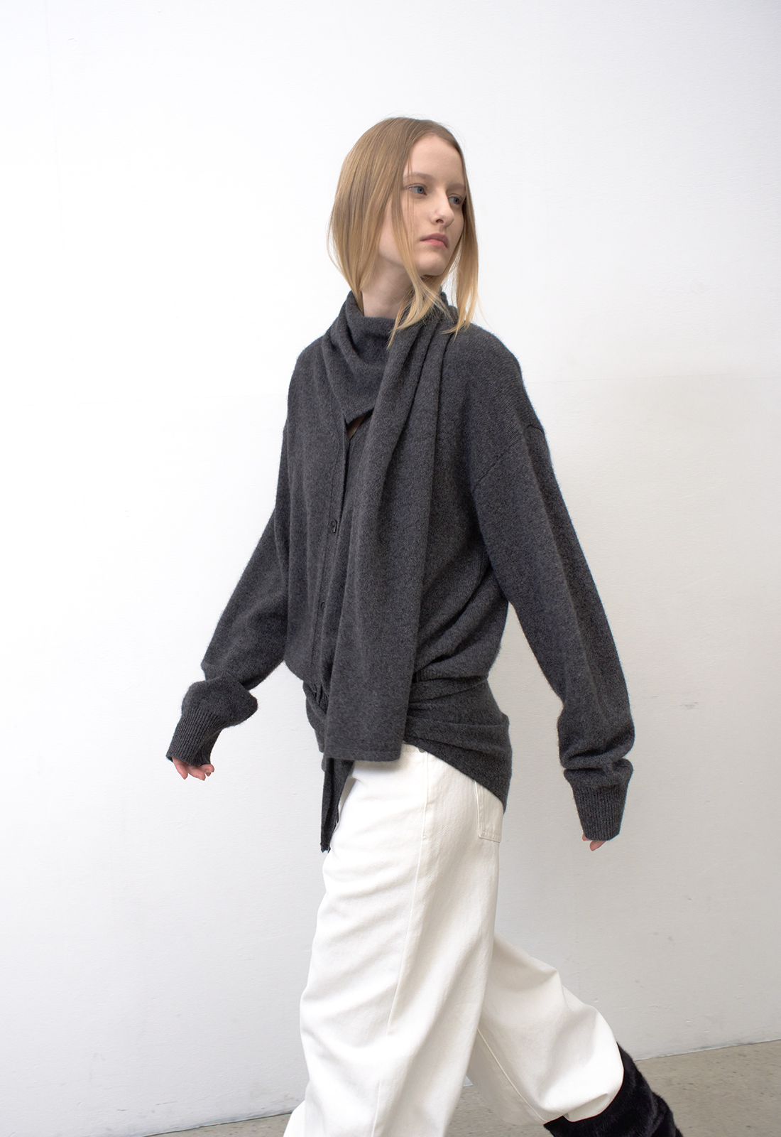 머플러는 한쪽으로 넘겨 자연스럽게 떨어뜨려 멋스럽게 연출이 가능하며,