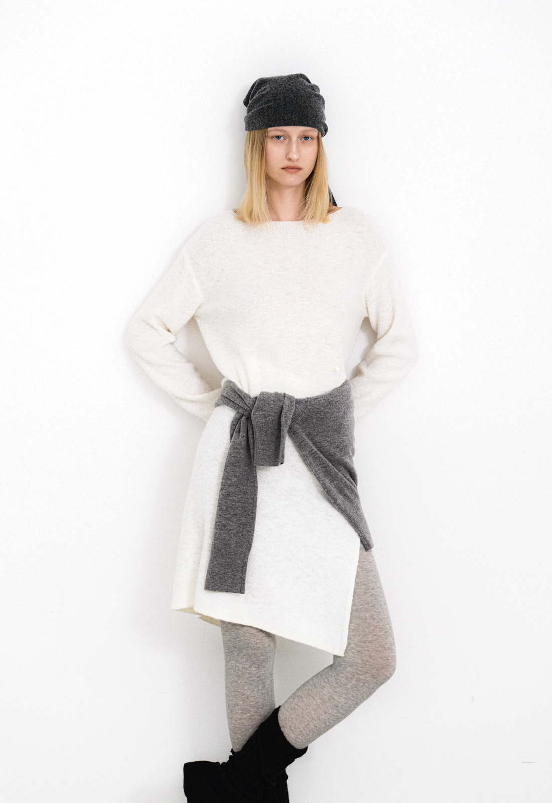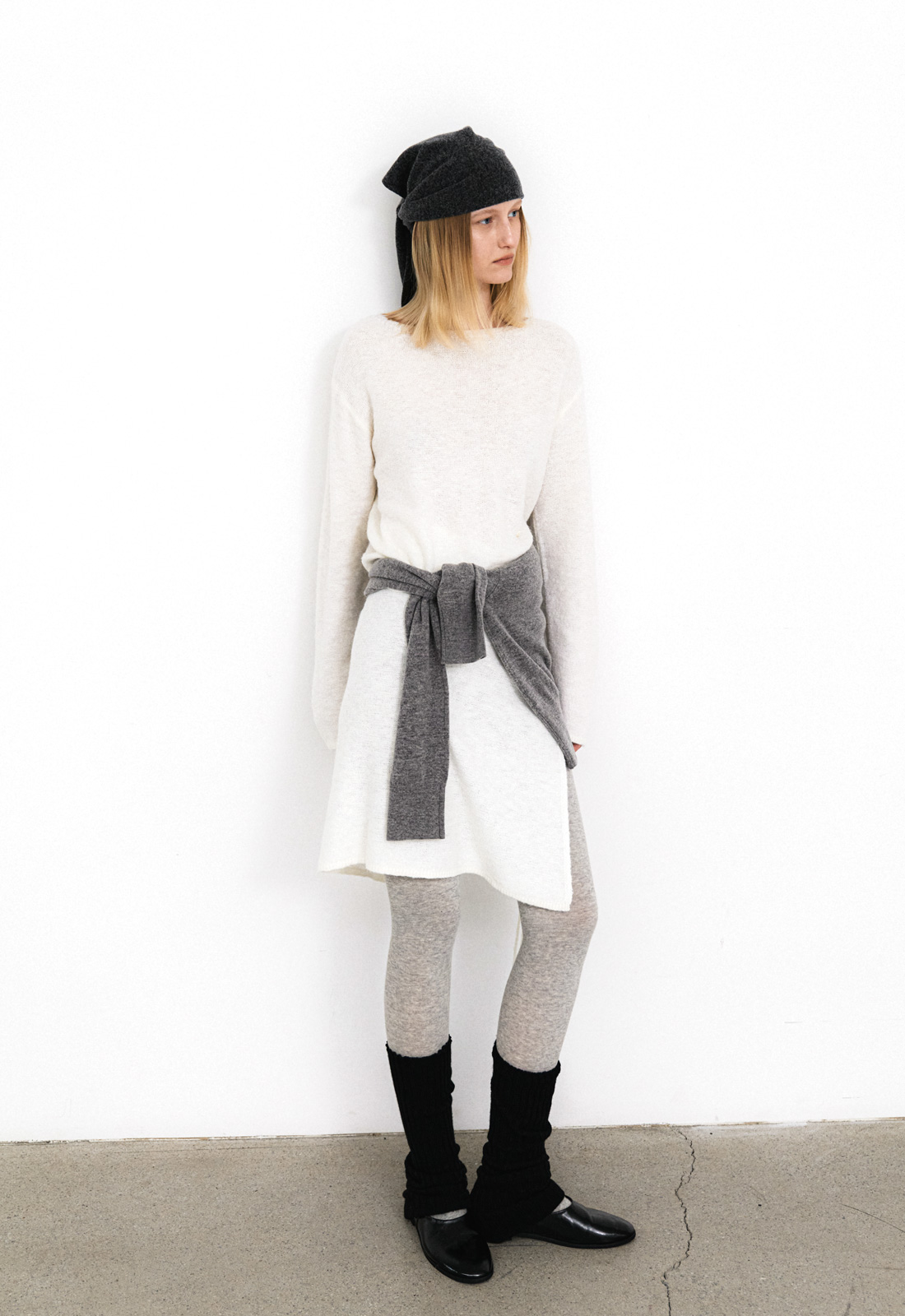캐쥬얼한 무드의 소재의 니트 풀오버와 레이어드 스커트가 세트인 아이템입니다.