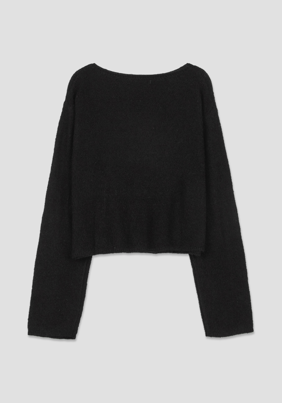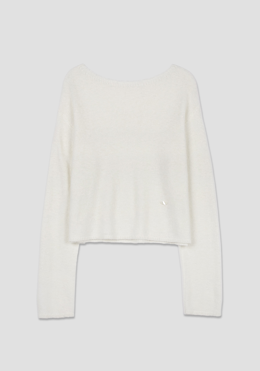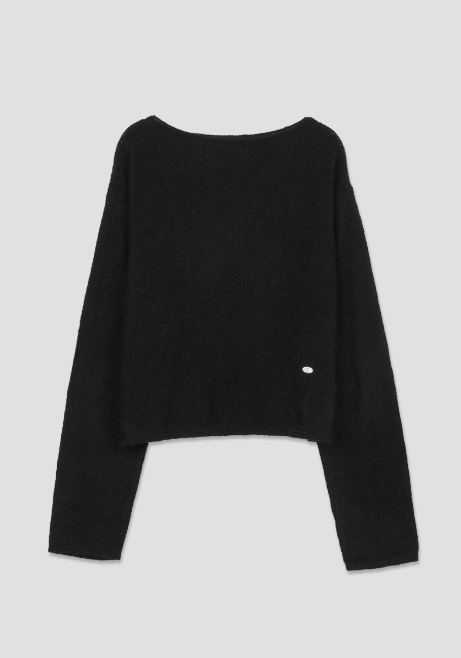 보트넥으로 네크 포인트가 되는 짧은 기장의 풀오버와