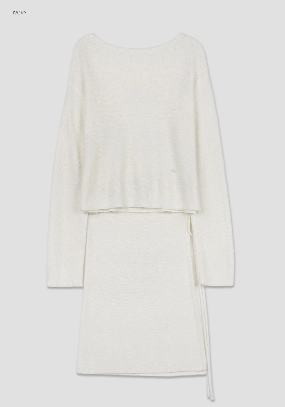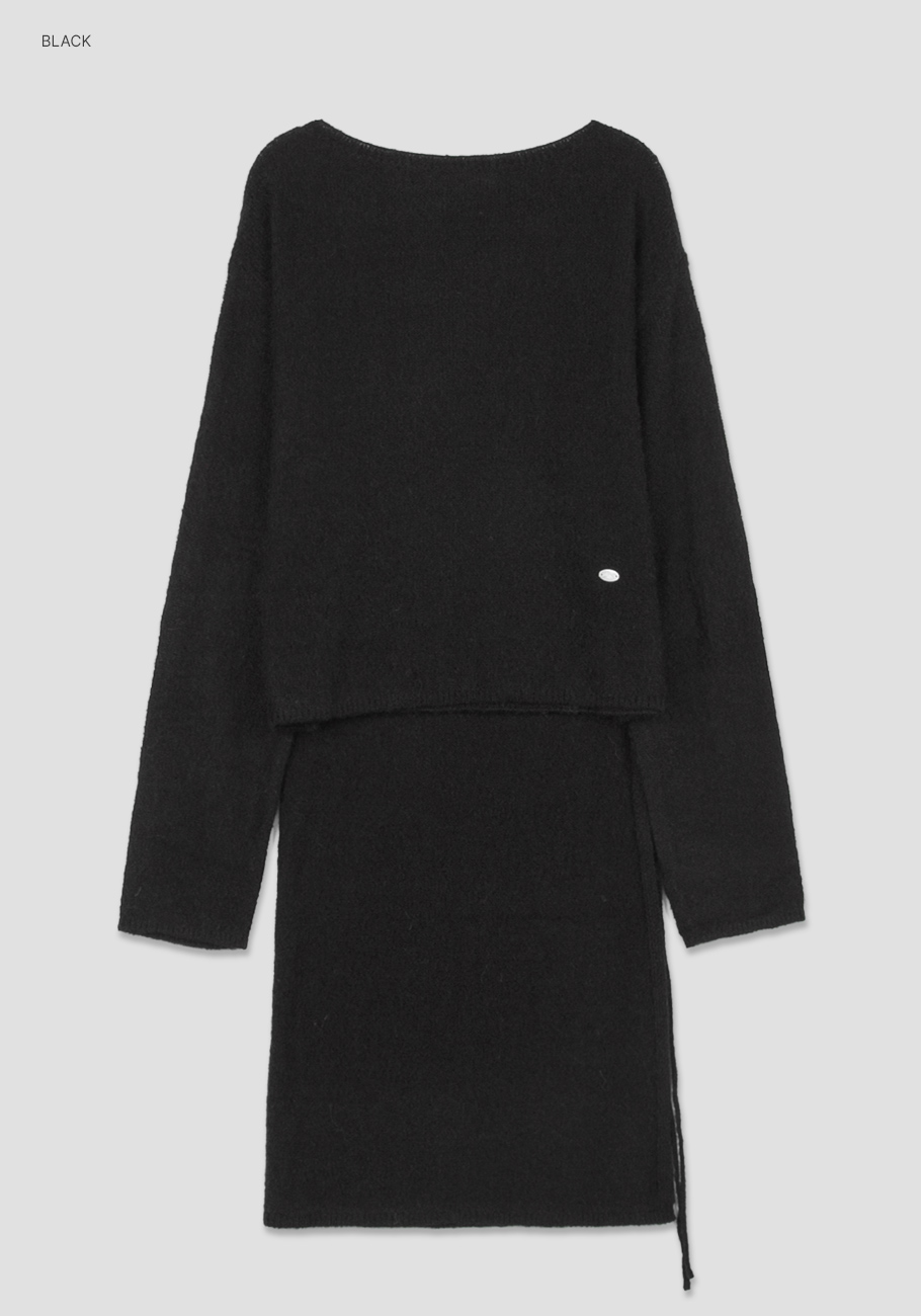 (OP-6312)BOAT NECK WOOL KNIT TOP&SKIRT SET S