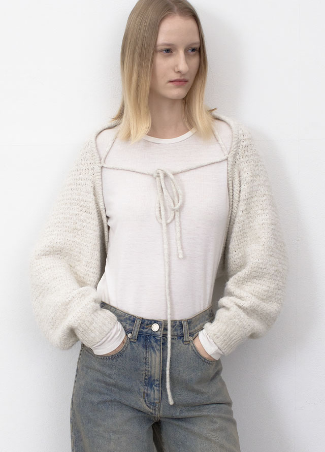 조직변형이 들어간 볼레로 니트 가디건 입니다.